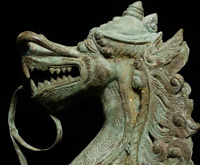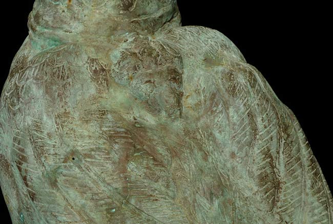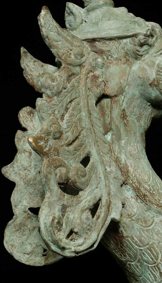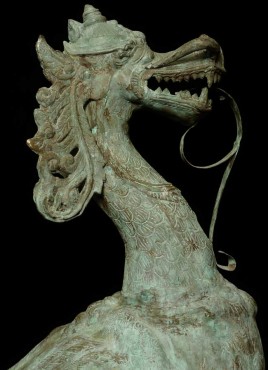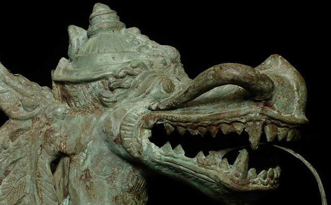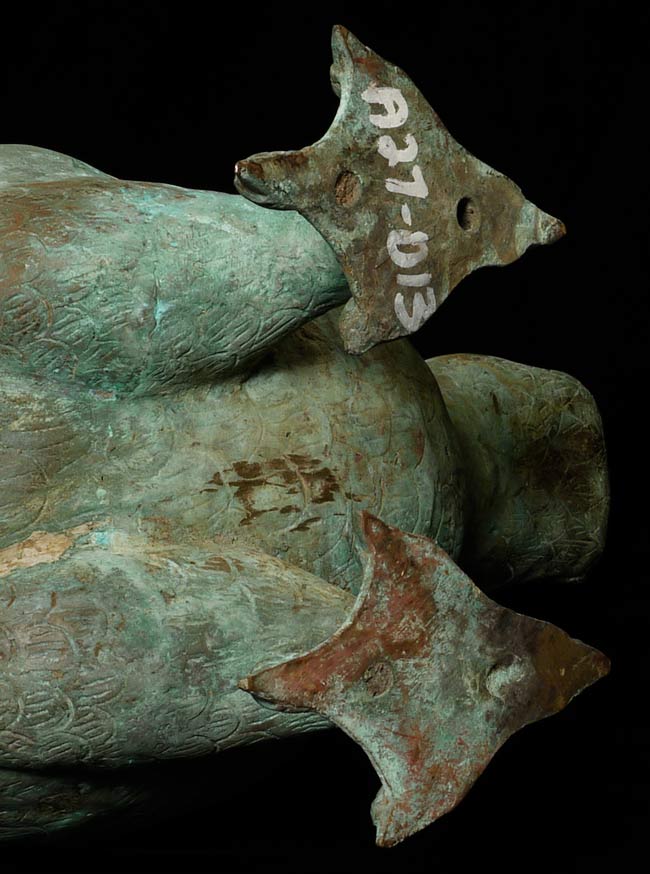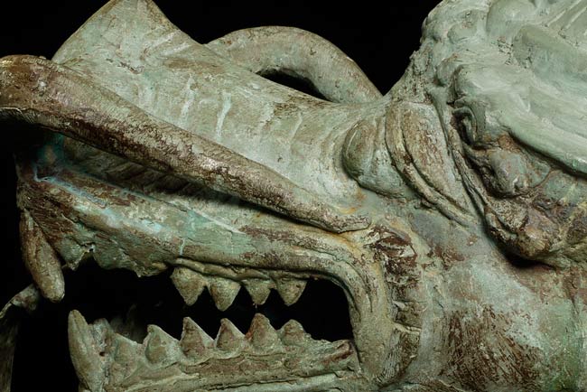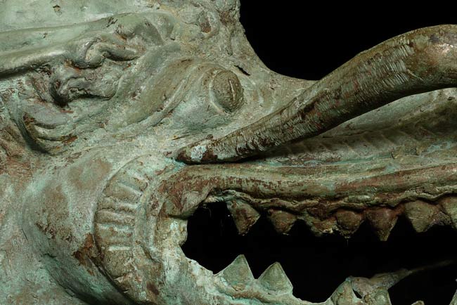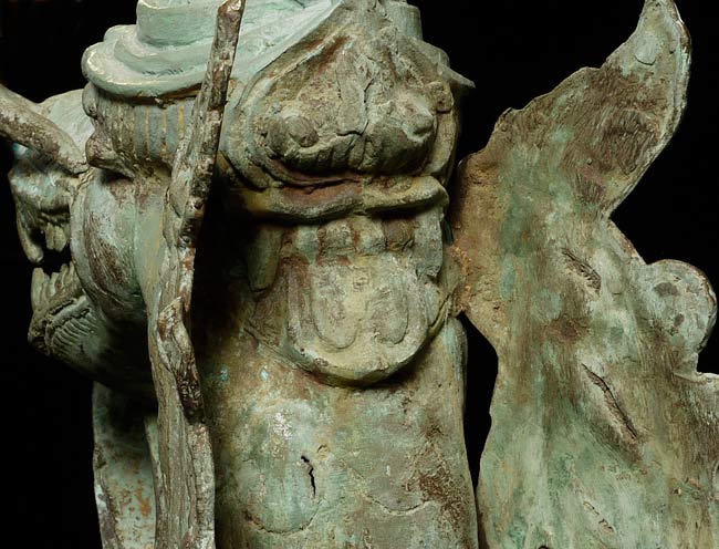 This amazing old creature is part duck, part dragon. He stands 29.5" tall, 21.5 from tail to breast, and is approximately 9" wide.