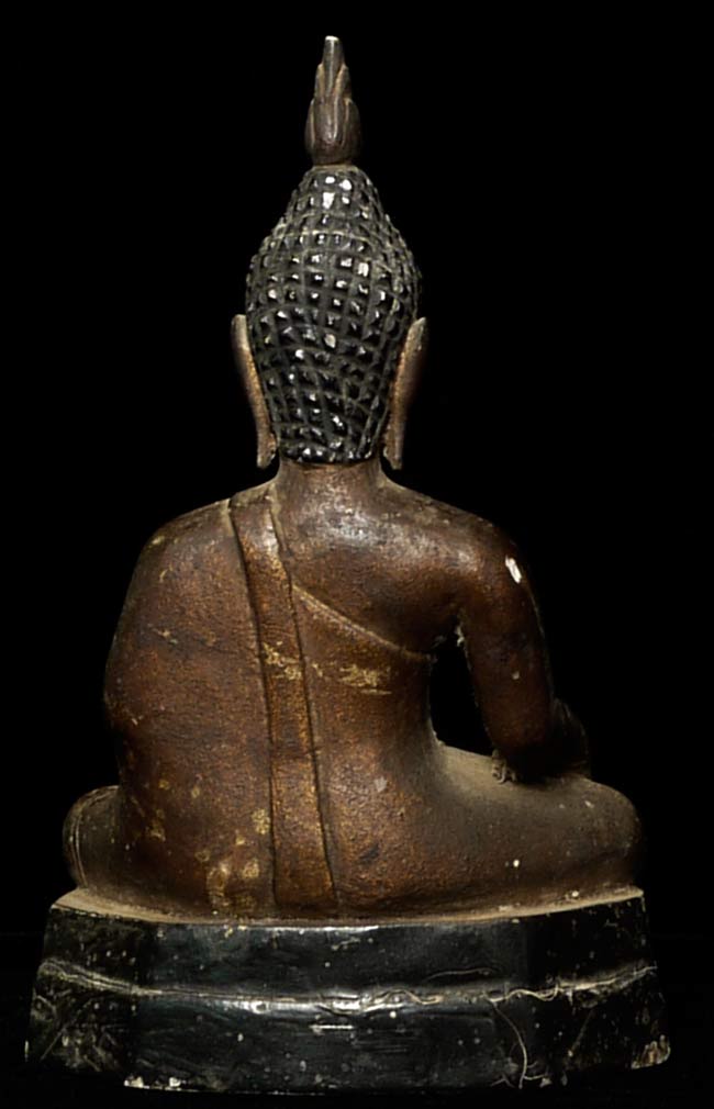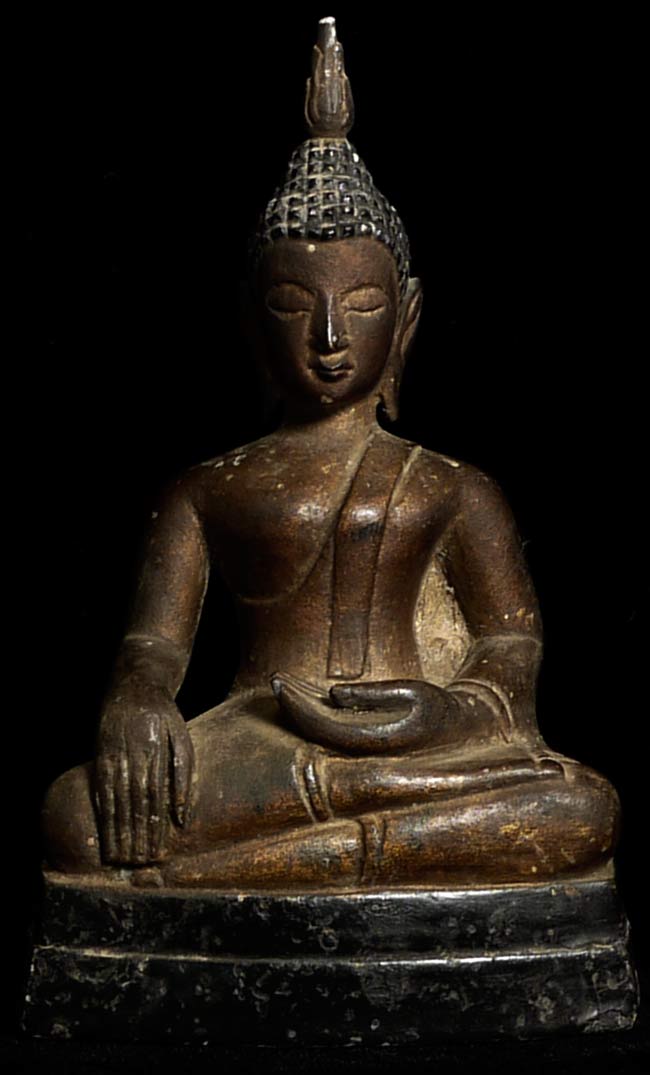 Rare antique gilded Nothern Thai Buddha sculpted in a hard black stone. 5" tall, base is 3" x 1.5". Superb face.