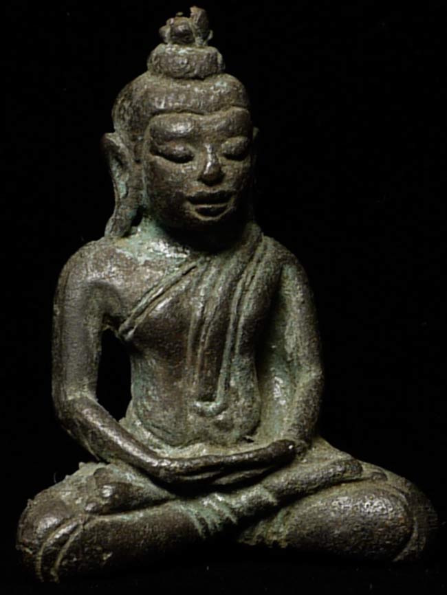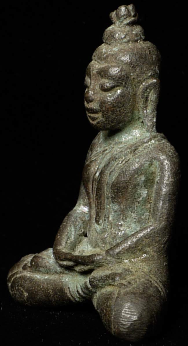 Wonderful miniature 17thC Thai or Burmese Bronze Buddha1 1/8" tall, with lots of expression. Rare in this size.