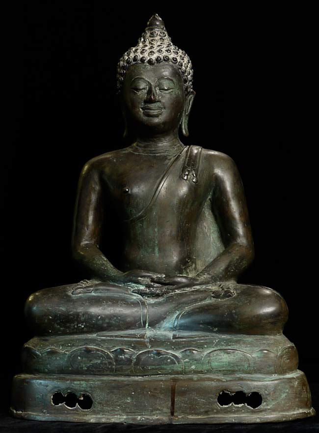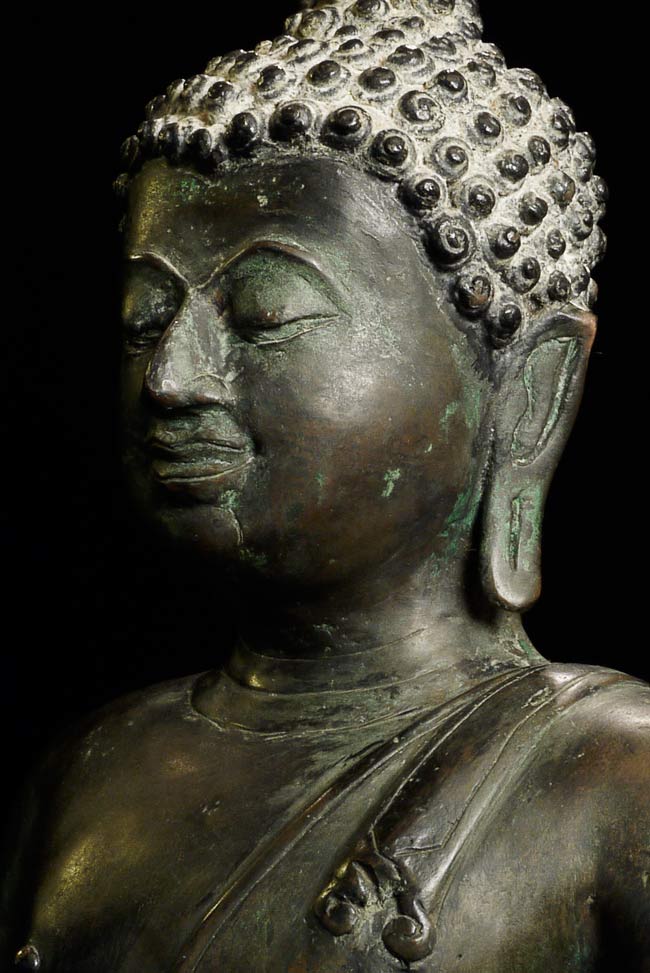 Large Anitue Northern Thai Buddha. PRobably 19thC, though could be earlier. Exquisite face, which radiates joy and calm. 18.5" tall.
