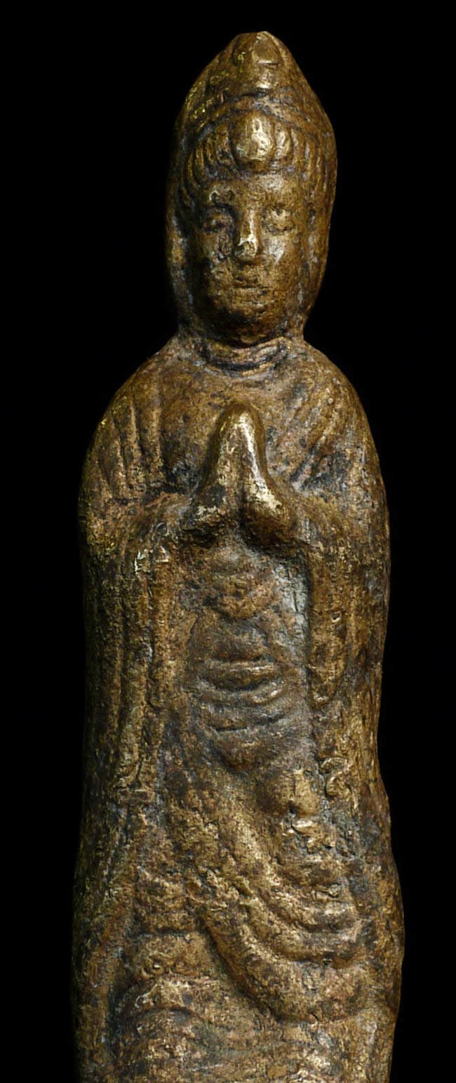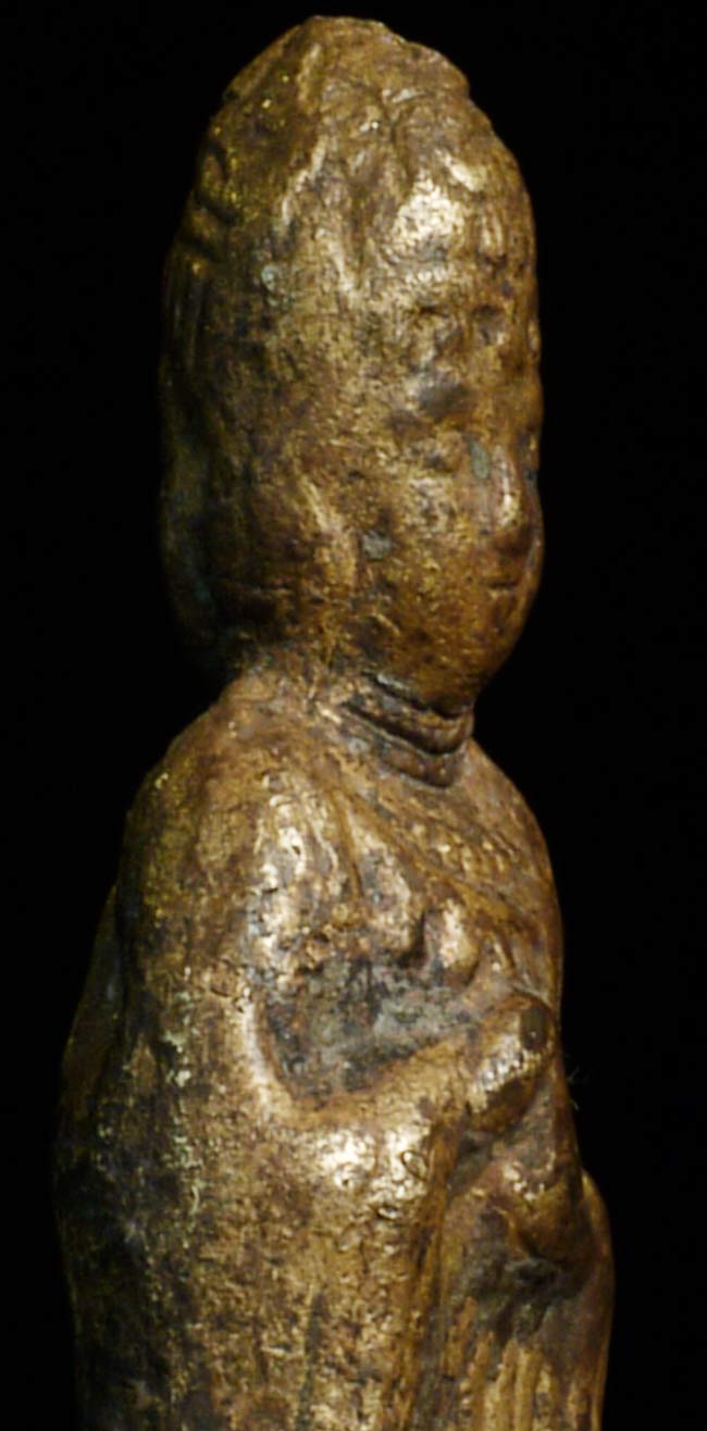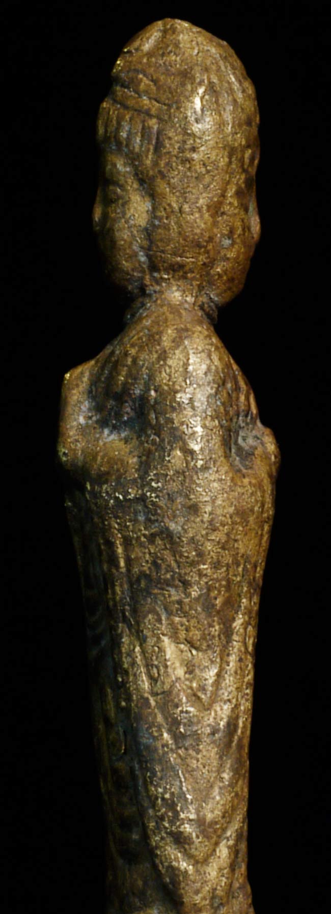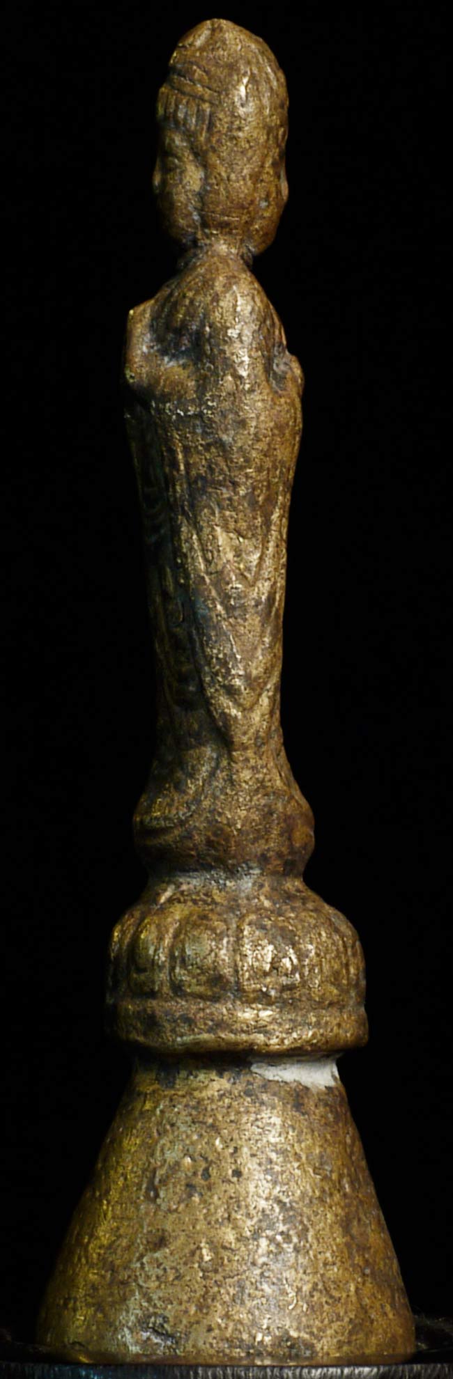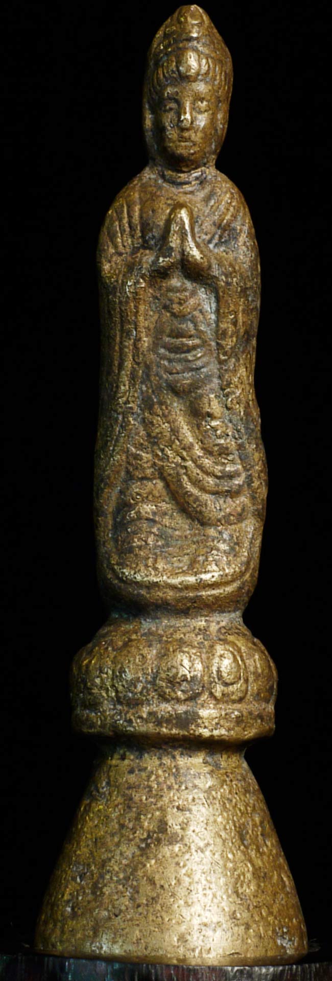 Korean 2 sided Buddha stands 4" tall, custom base adds another 1 1/8" and has a diameter of 1.75" Never seen another. Hard to date- my best educated guess is 15-18th centuries