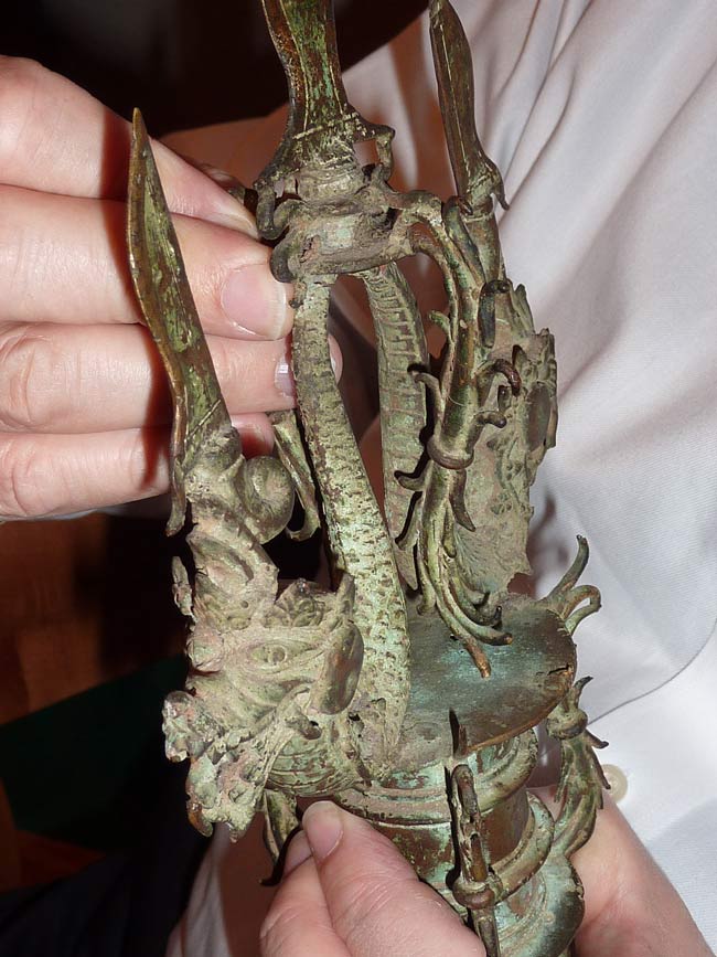 13/14thC Indonesian Majapahit Era Processional Finial. Extremely rare- only seen others in the Metropolitan Museum in New York. Currently the top center part is separated- I leave it up to the next owner to repair. 10" tall, with the additional piece, if attached, that would add another 1.5".