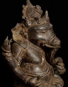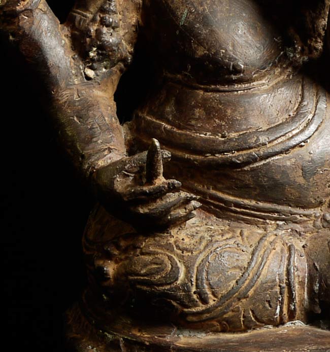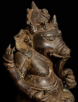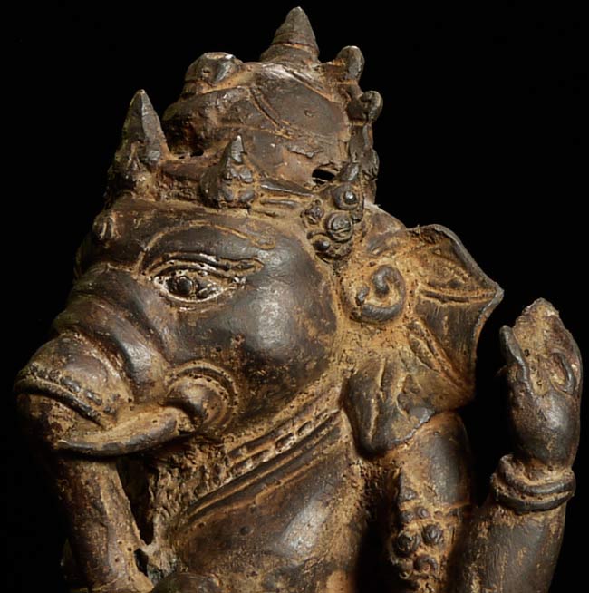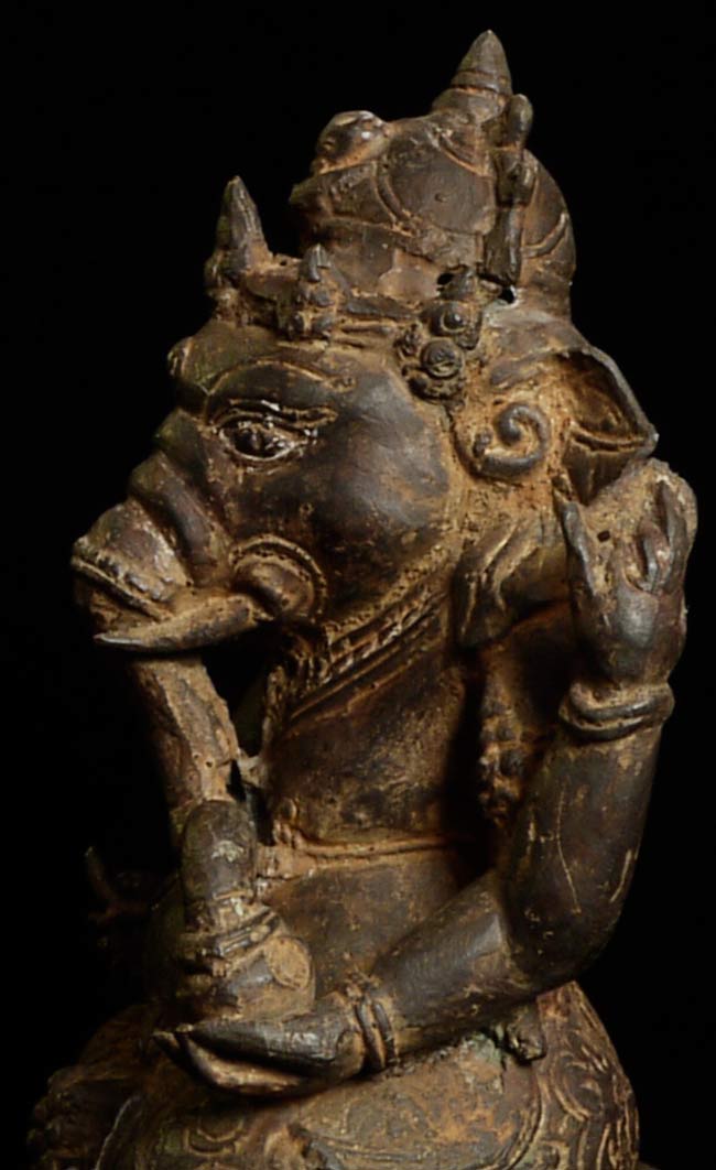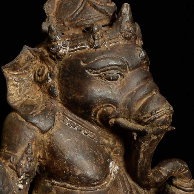 Imposing Old Indonesian Ganesh. He sits 11.75" tall, base is approximately 7 1/2 inches in diameter.