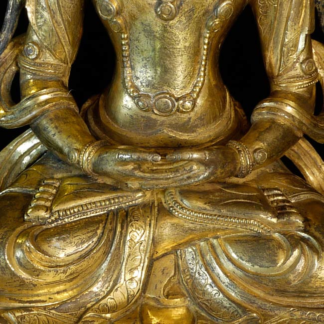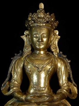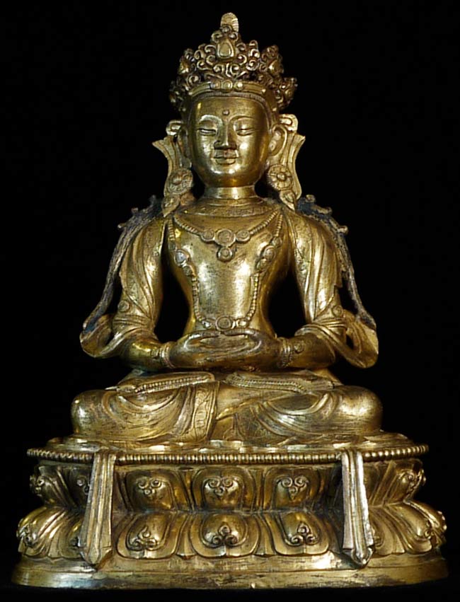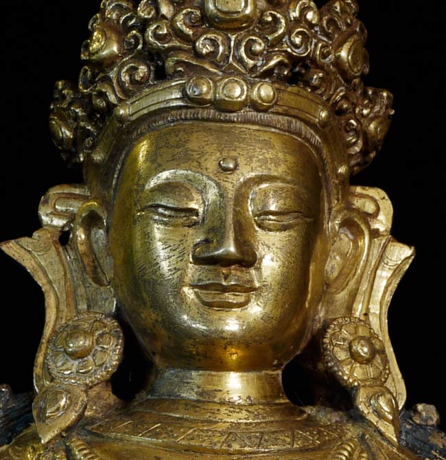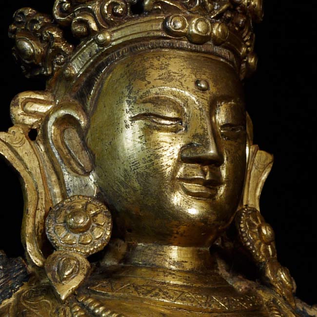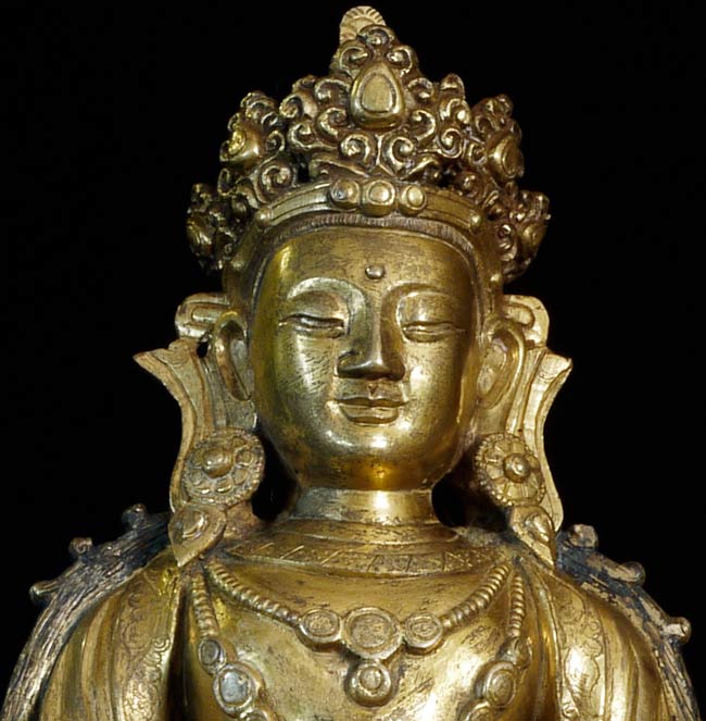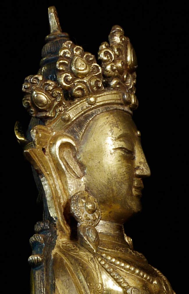 Superb 17thC or earlier Tibeto-Chinese Bodhisattva of long life. Very good size for this type at 7.5" tall, 5.5" x 4". Not inexpensive.