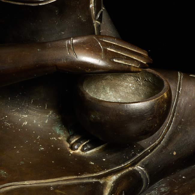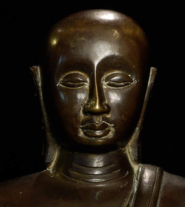 Quite rare- 18thC Sri Lankan Monk. Solid cast figure is quite heavy. Large for its type at 8" tall, base measures 7.25" x 4.25"