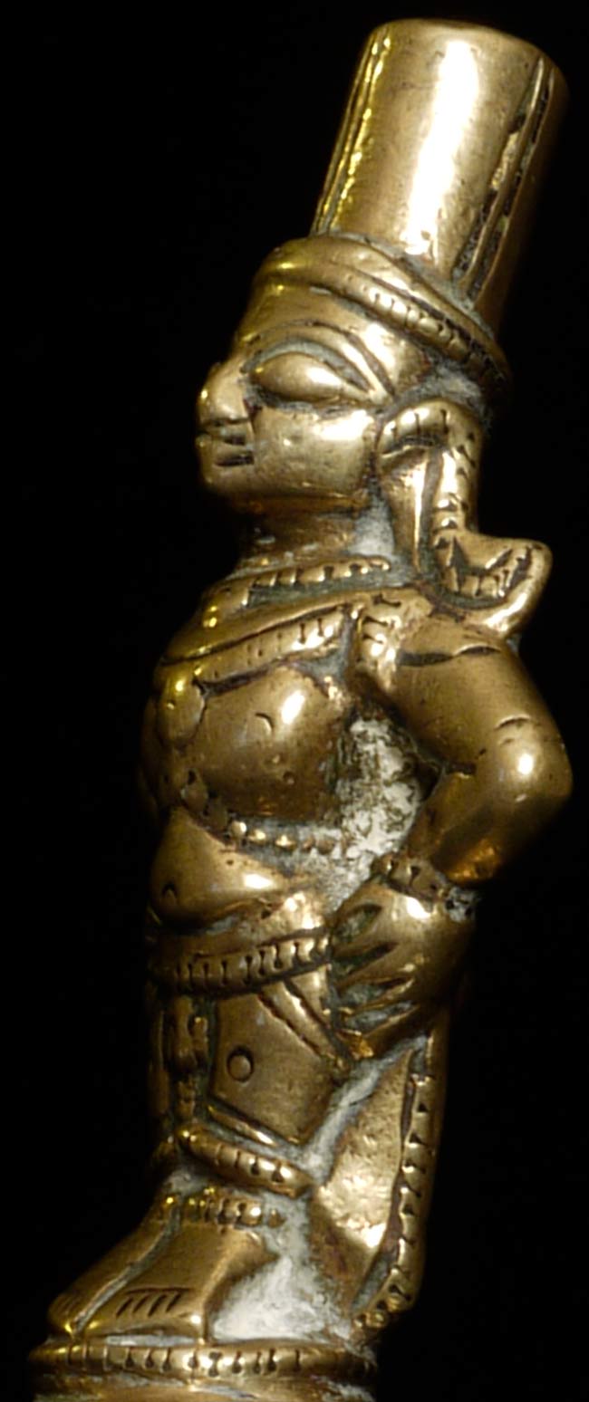An unusually, unique 18/19th century Southern Indian figure with strong poise. This piece is 3” tall and its bottom squared base at 1.25”.