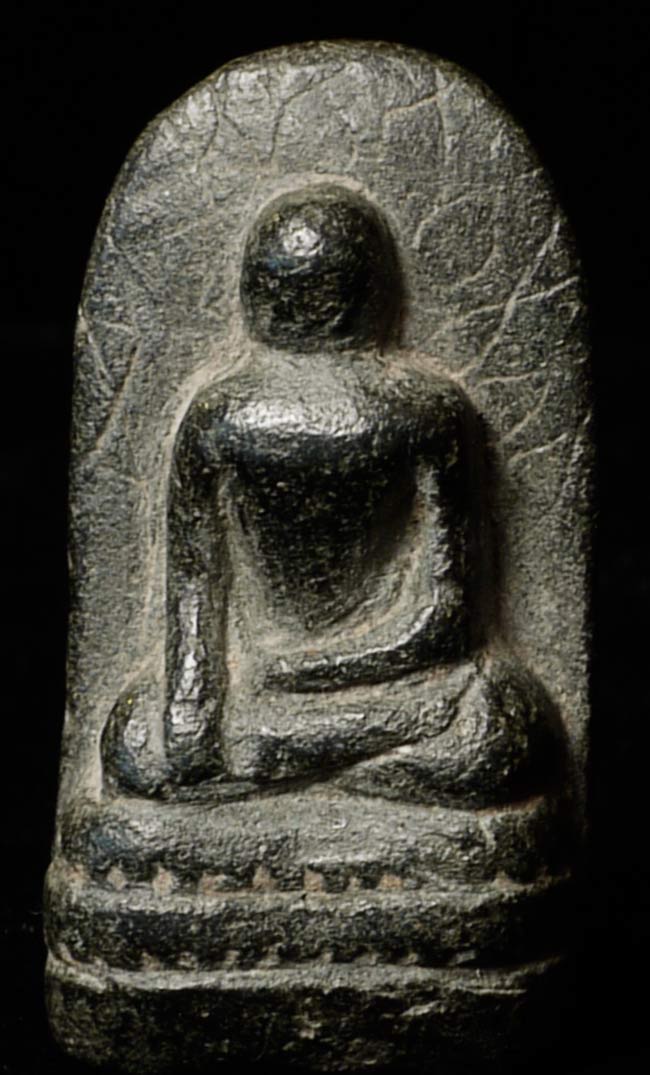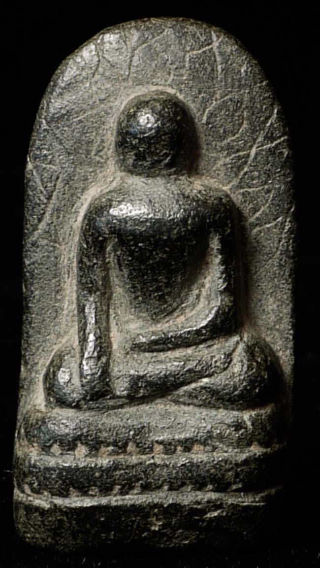 Rare Early Thai Amulet in Black River Stone. This type is almost always molded in clay. I believe this one is a true period piece. Never seen another. 1 1/8" tall, bottom is .5" x .25"