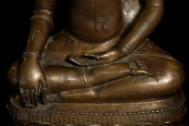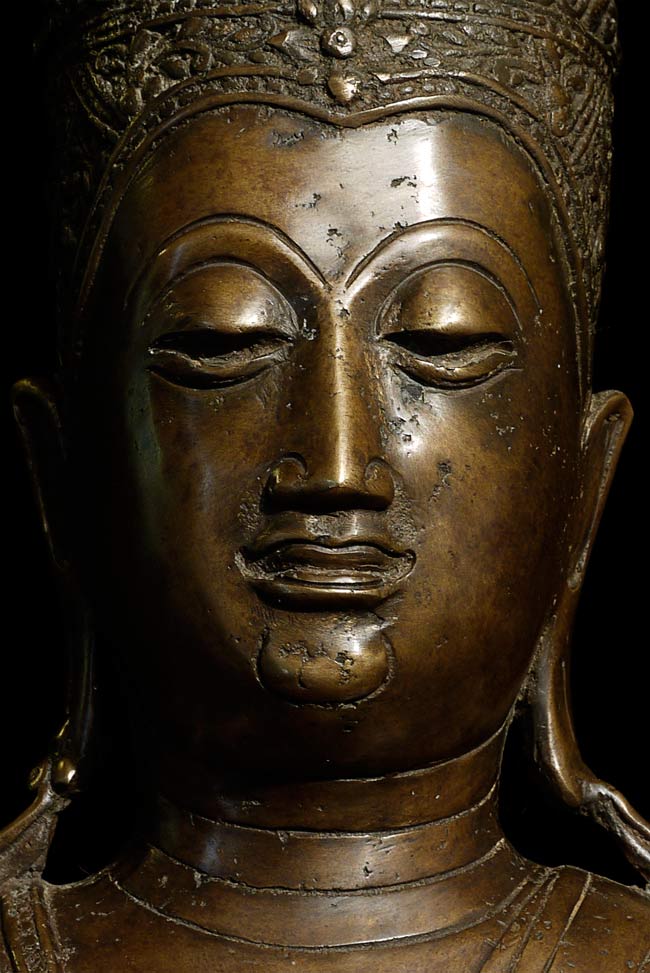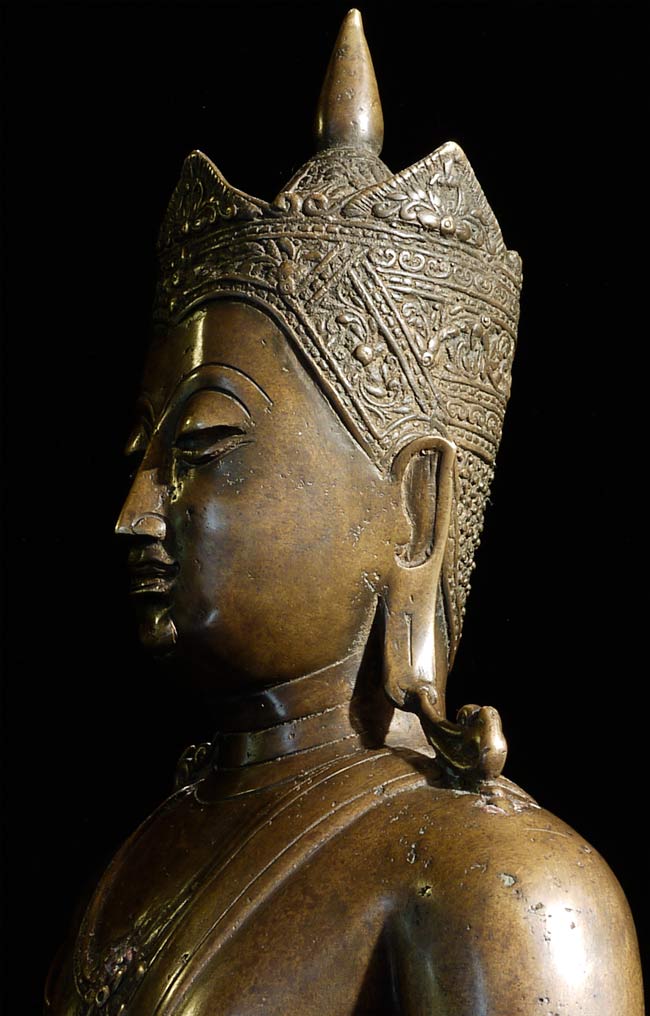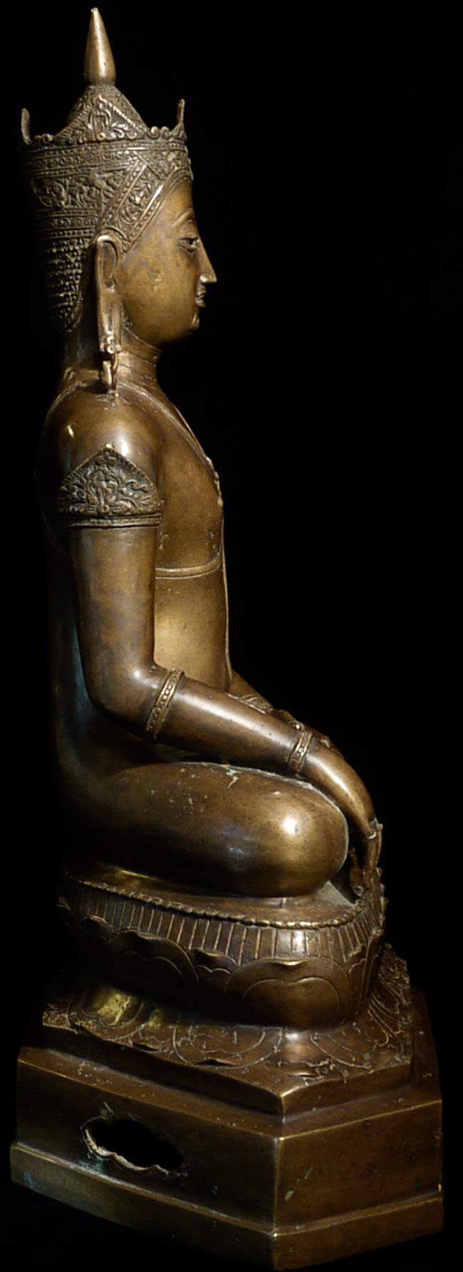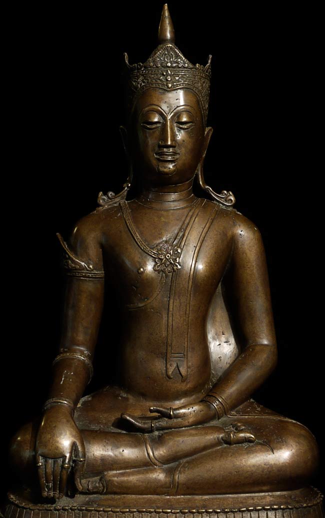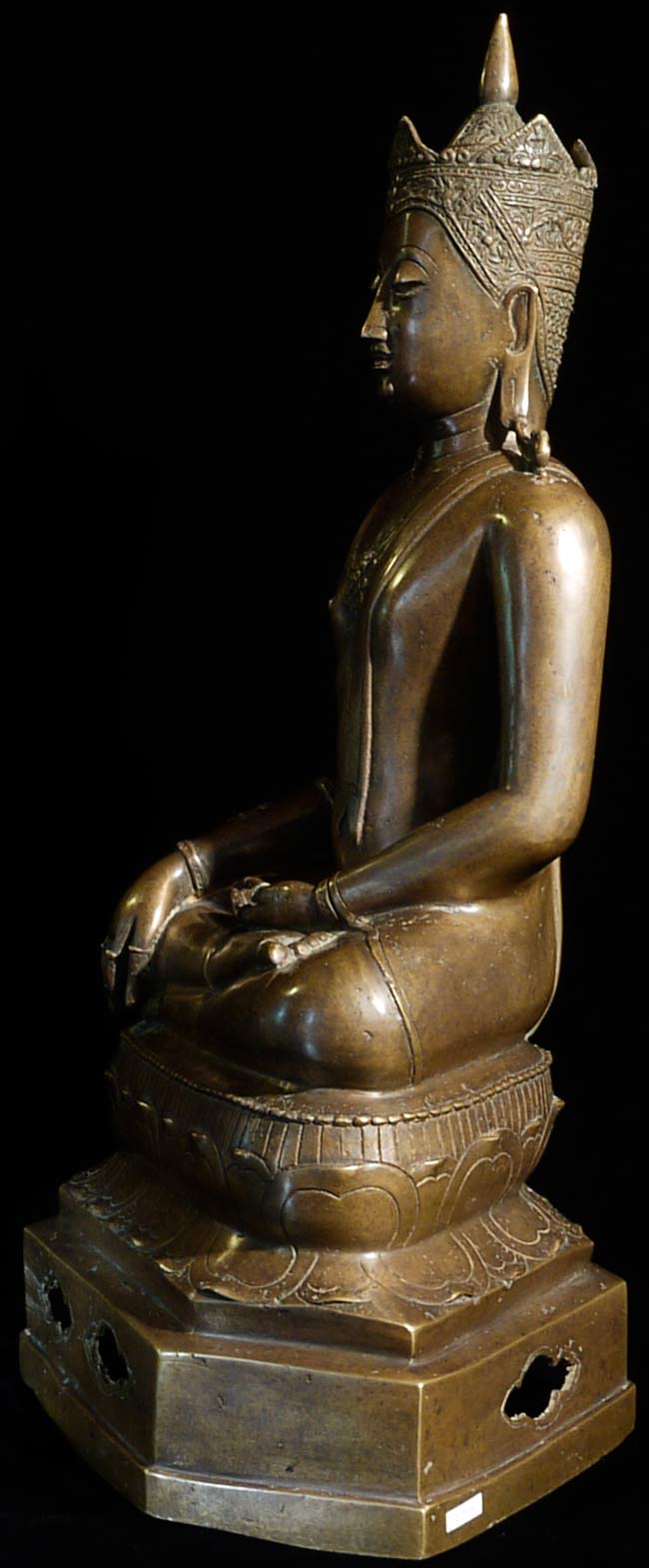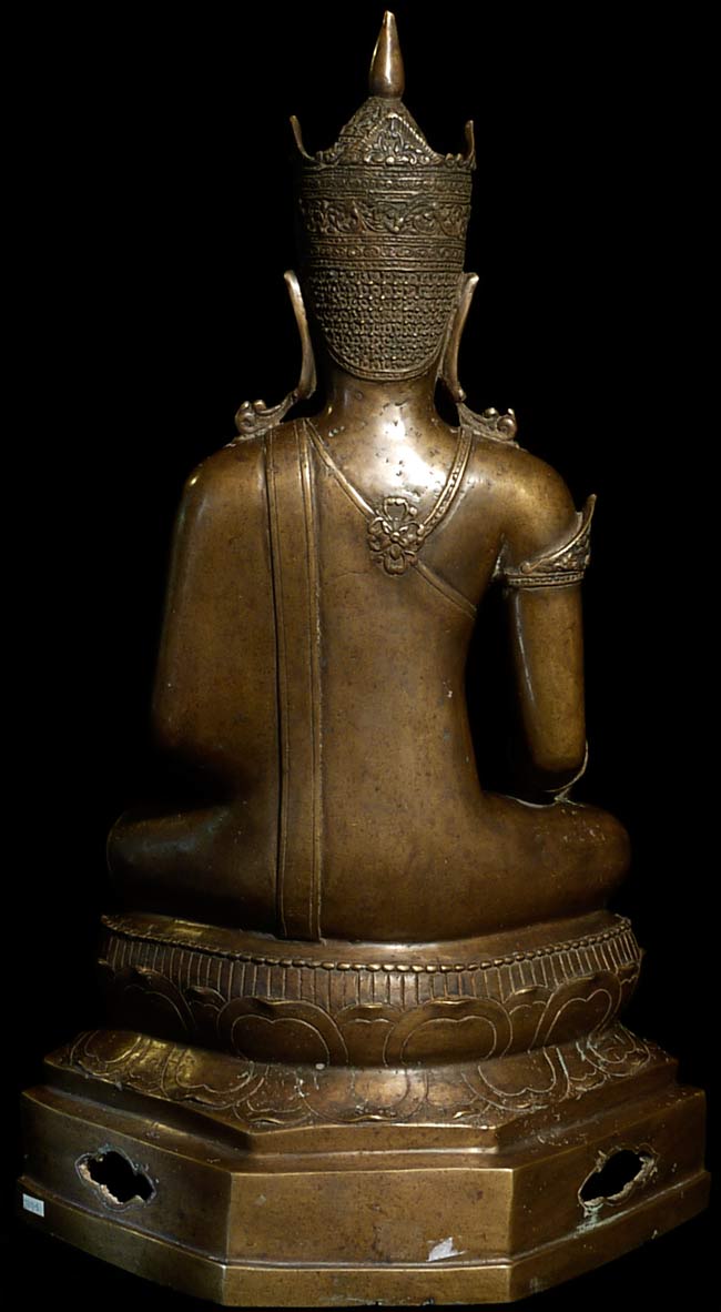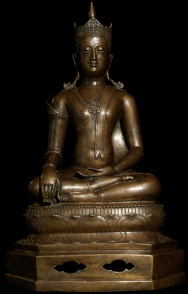 Beautiful 16th/17thC Royal Buddha is 20.25" tall, and the bottom measures approximately 12" x 8". Gorgeous details!