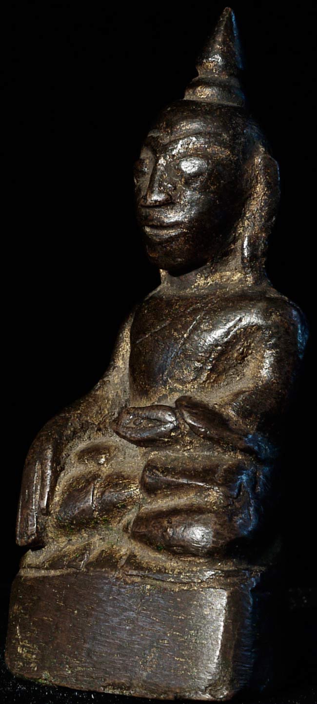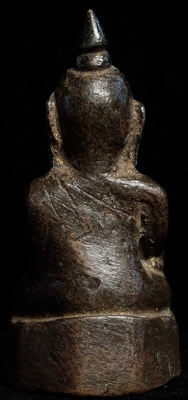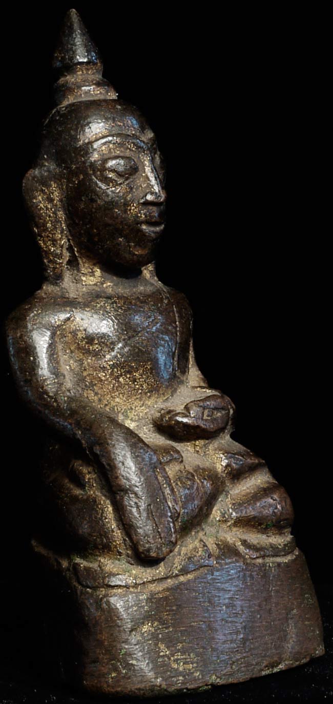 17/18thC Burmese Bronze Late Ava Buddha. 2 7/8" tall, bottom measures 1 5/8" x 1"