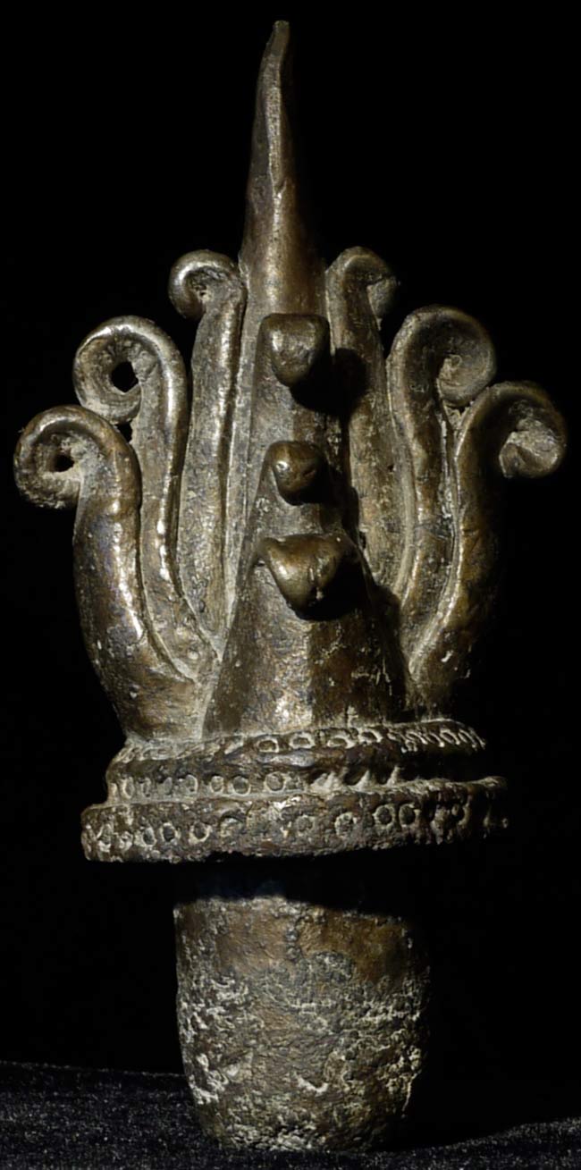 Incredible antique Laos Buddha finial. Hard to date precisely- probably 15th to 18th century. One of a kind. 4.5" long/tall, 2.25" at widest point,