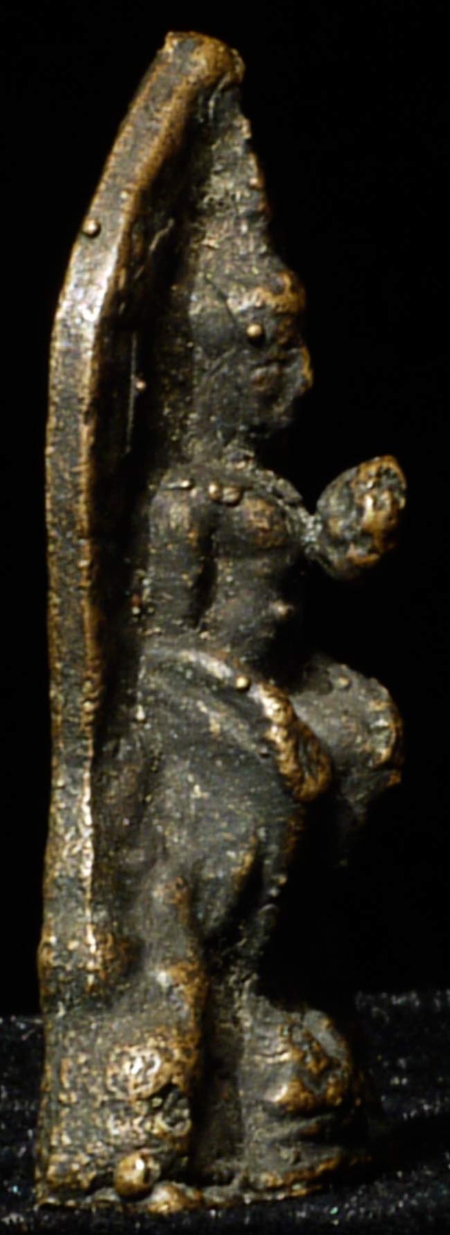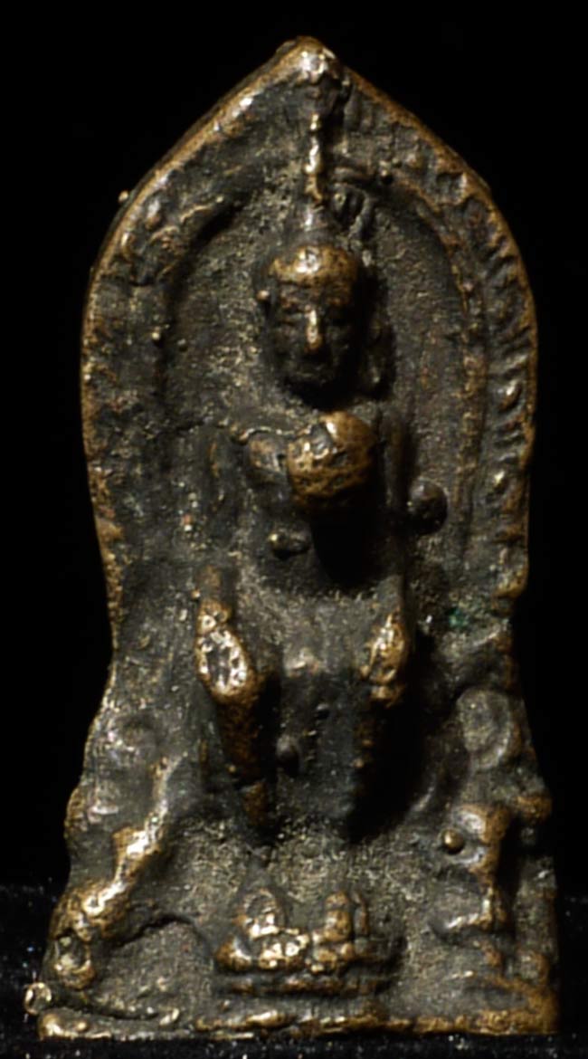 Unusual Thai Vintage Buddha of the future. He has a casting flaw in the center of his chest over his heart. 1.25" tall, .75" wide, .25" deep