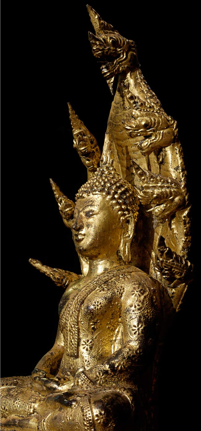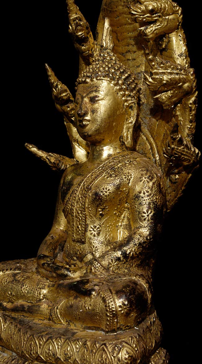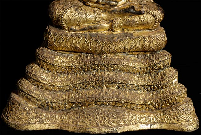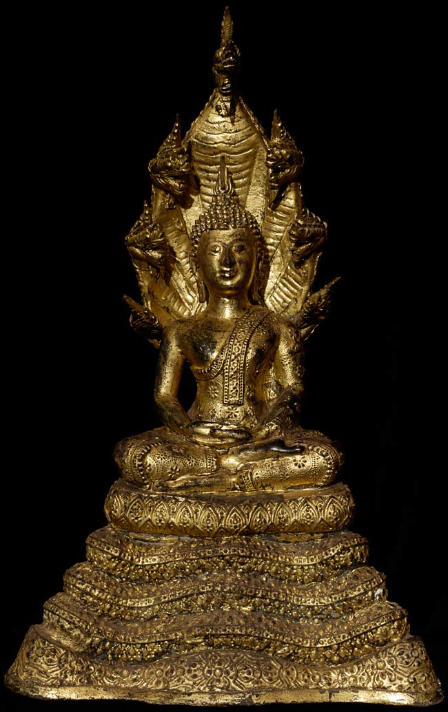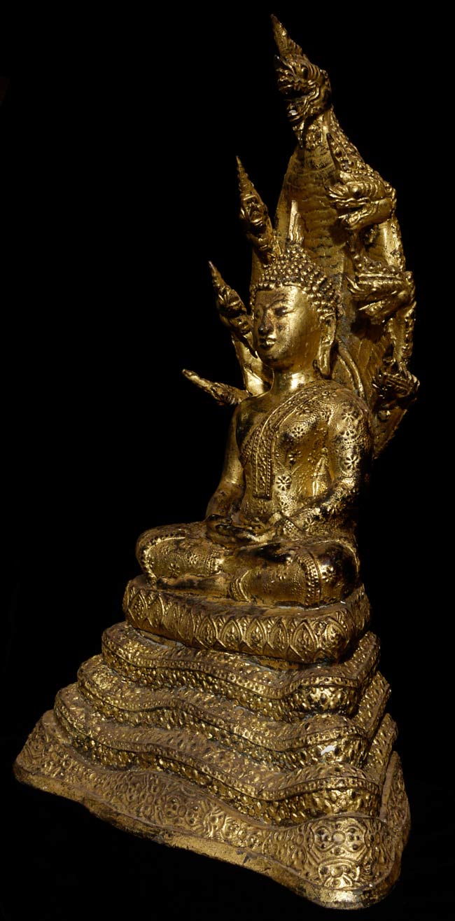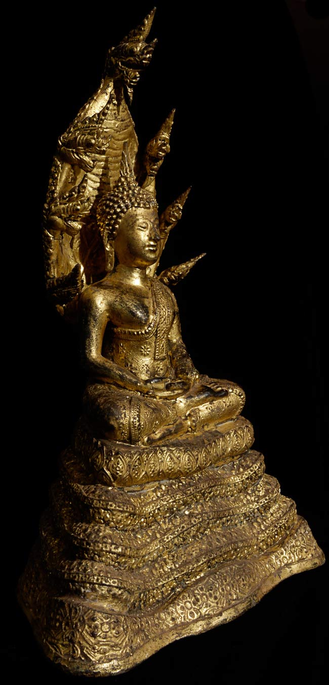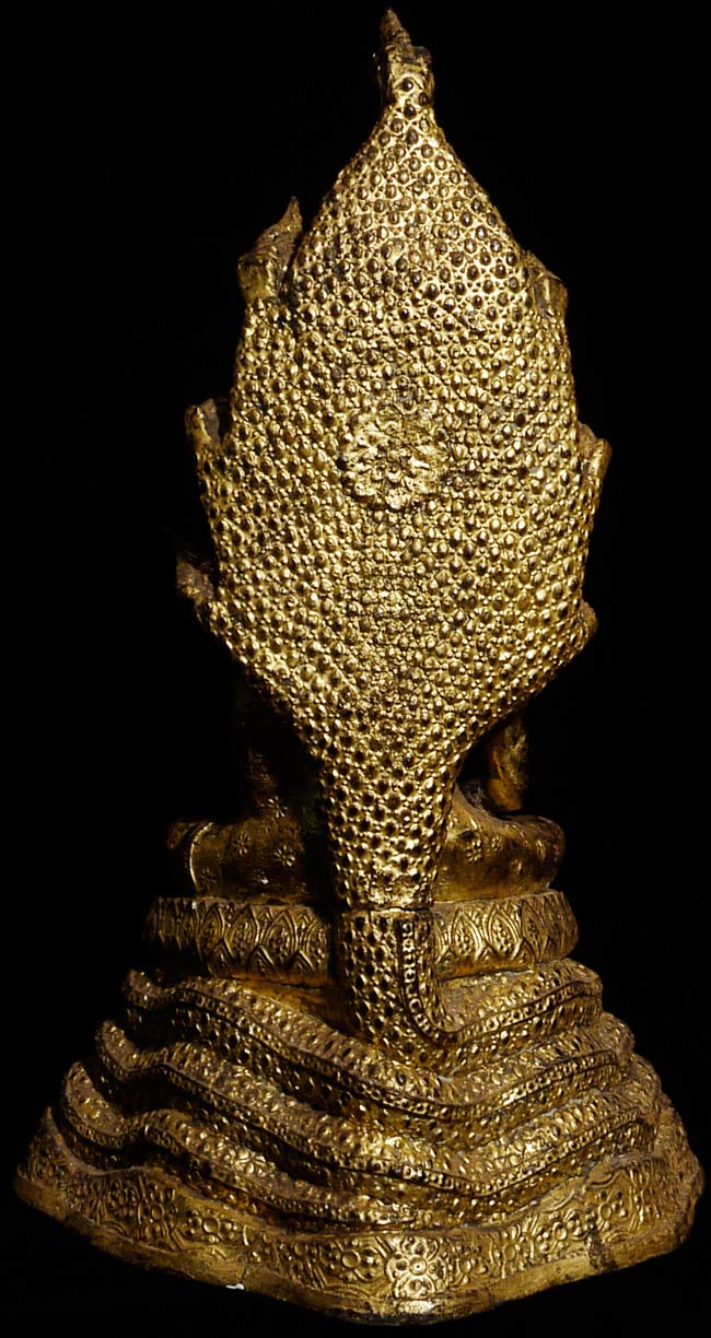 Antique Thai Naga Buddha. Probably 19thC-may be early 20th. Hard to find this type in this size and condition. 14.75" tall, bottom is 8.5" x 6.5"