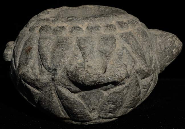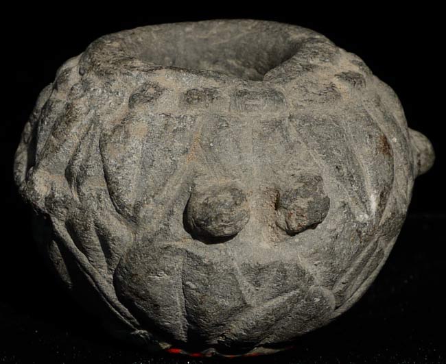 Stone oil lamp from Gandhara or related early culture. De-accessioned from the Asian Art Museum in San Francisco. Measures 1.75" tall, 3" x 2.5"