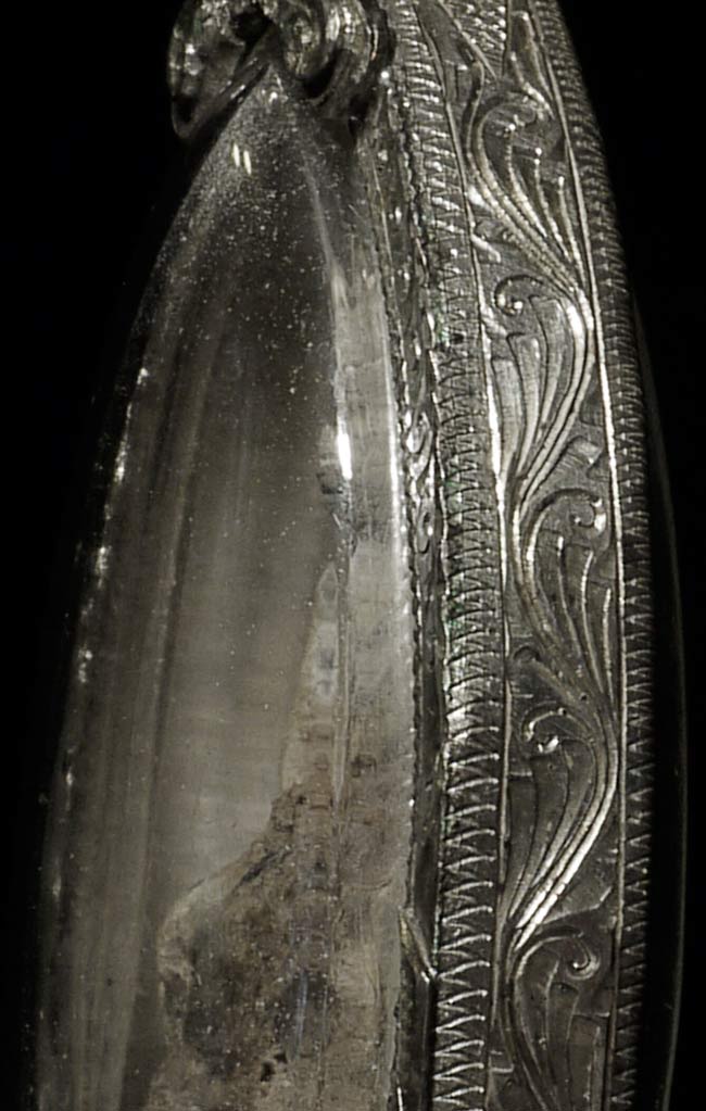 A personal favorite: 18thC or earlier Burmese silver/lead "Buddha of Wealth" in a silver-framed amulet case. The amulet is 2" tall, not including loop, 1.25" wide, .25" deep