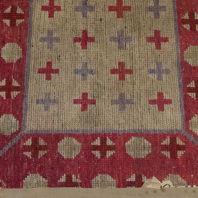 Circa 1900 inner Mongolian sitting rug measures 22.5" x 24.75". Soft, luminour wool. Could use a cleaning