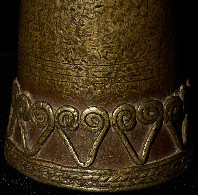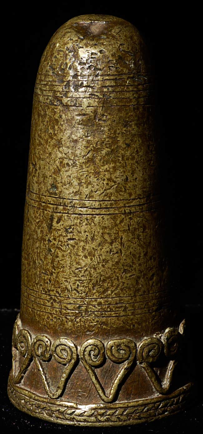 Mystery antique SE Asian bronze ritual item. I found a closely related example in a Christie's catalogue. They called it "19thC SE Asian Ritual Item"3" tall, bottom diameter of 1.5"
