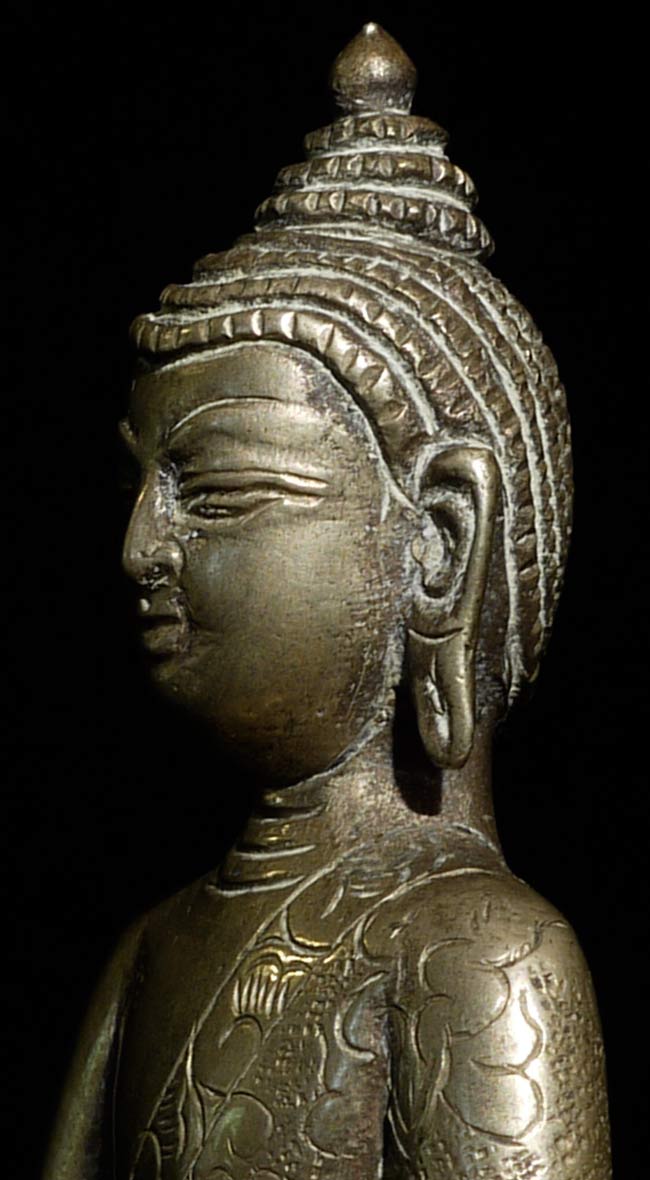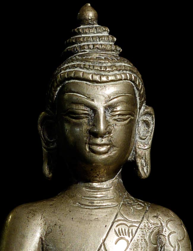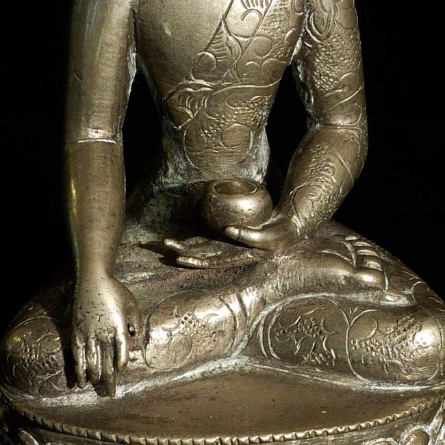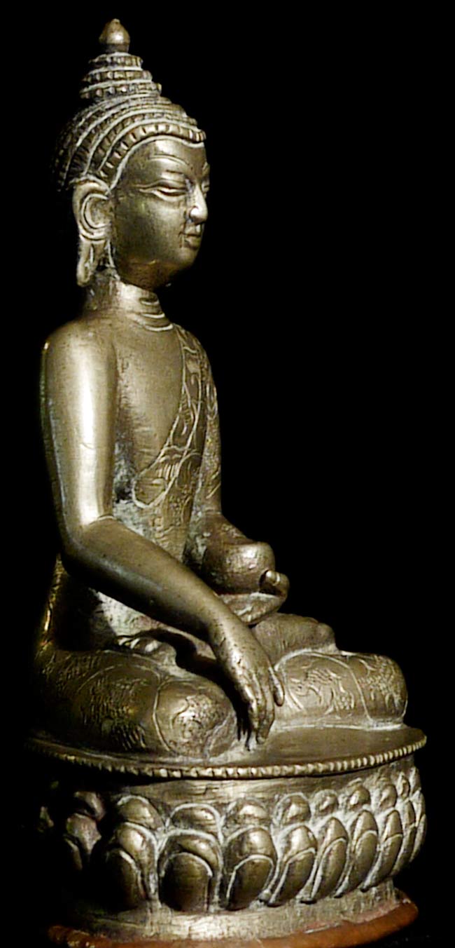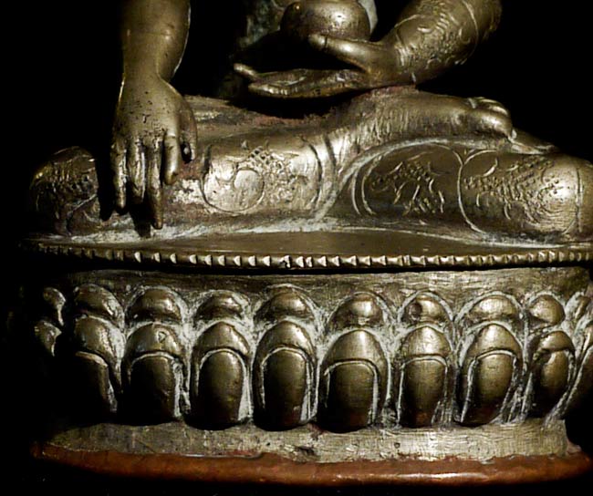 Seated Vintage Nepalese Medicine Buddha is 3.5" tall, bottom measures 1 7/8" x 1 3/8". Lovely detail!