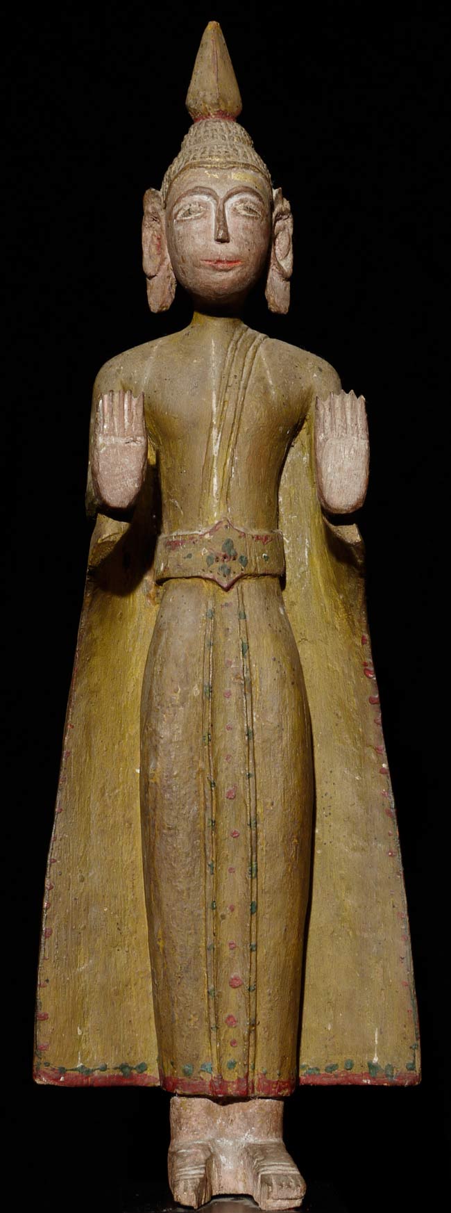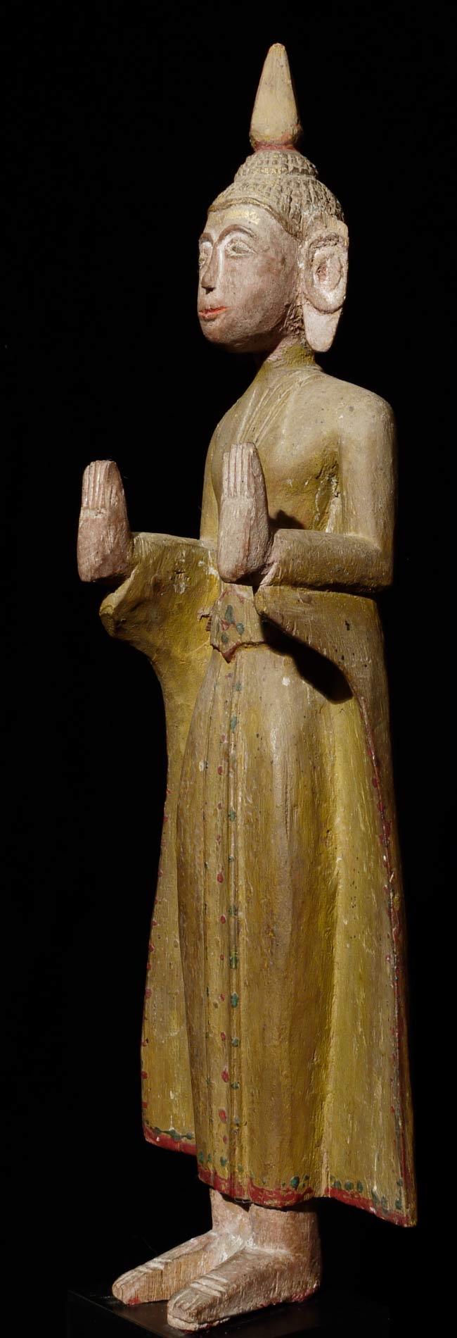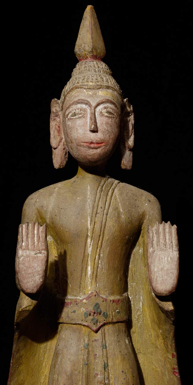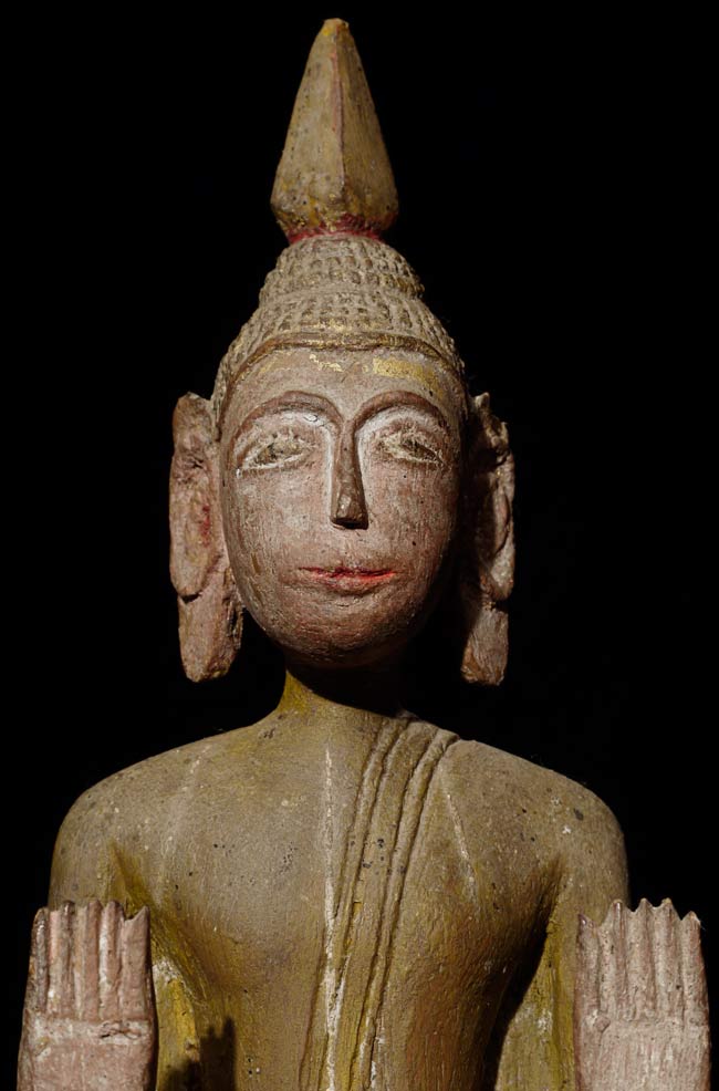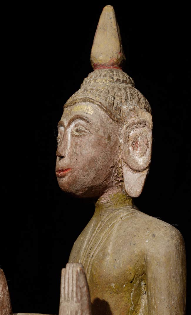 Great old Laos folk art Buddha. Very few of this type have patinas as nice as this one. 10.75" tall on a stand that is 2.5" high x 2.25" wide x 2.25" deep
