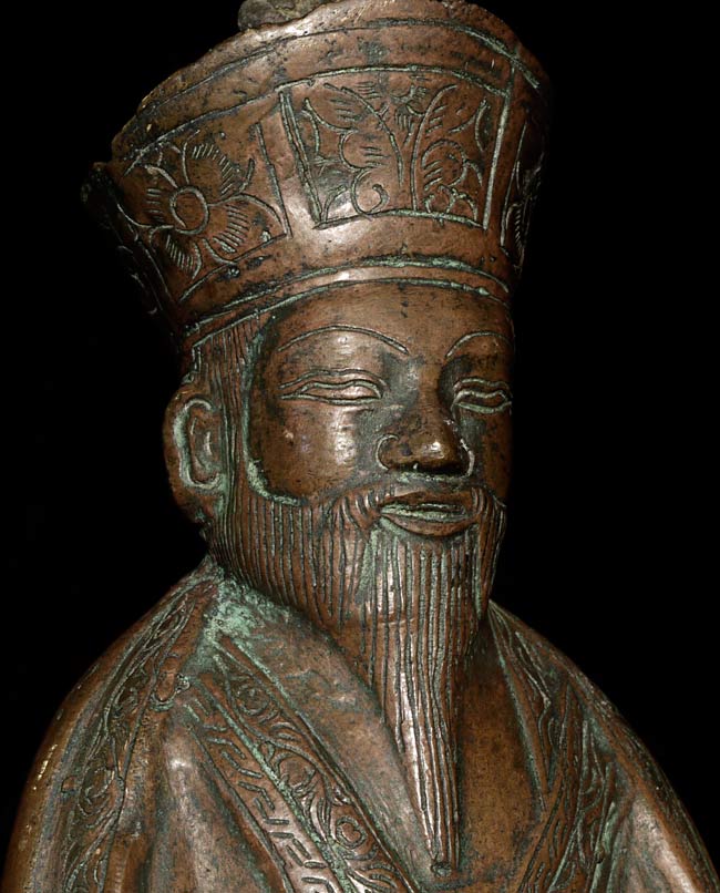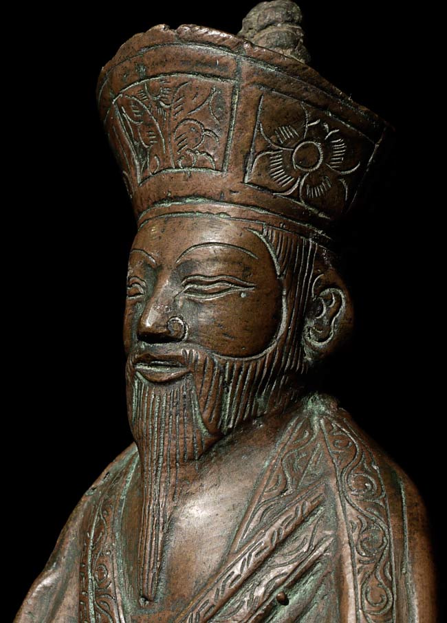 19thC Bhutanese copper alloy figure. . 6.25" tall, bottom measures 3.5" x 3"
