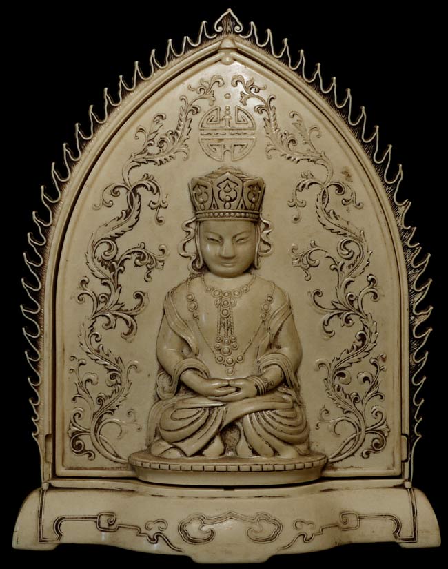 Beautiful and very uncommon Chinese Celloid Buddha Shrine. Probably late Ching, circa 1900. 8.5" tall, 6.25" wide, 4 5/8" deep