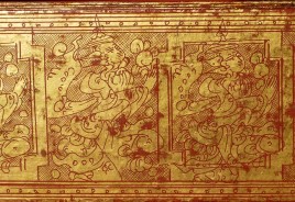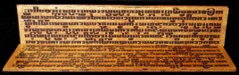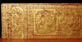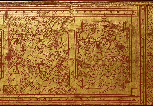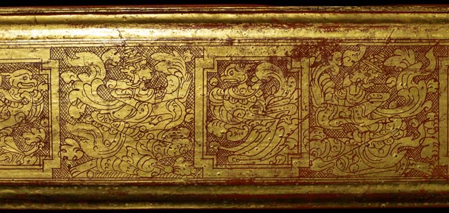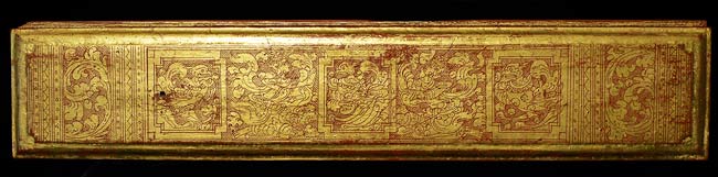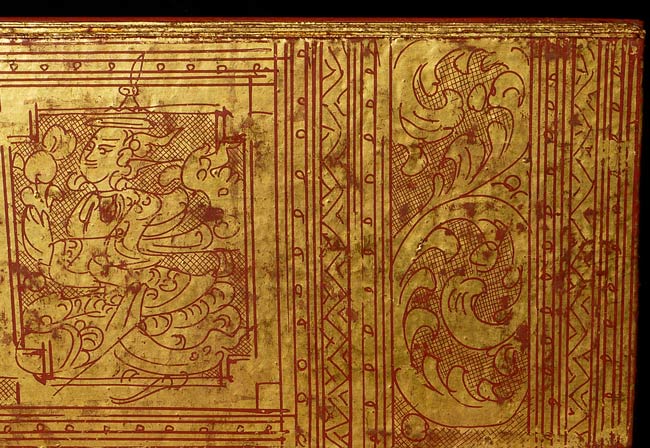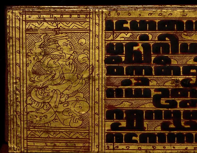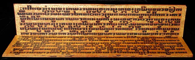 Beautiful old Burmese Bible- 16 double sided pages plus covers. This type looks beautiful mounted and framed. Measures 19.25" long, 3 5/8" wide, .75" deep with 10 internal pages.