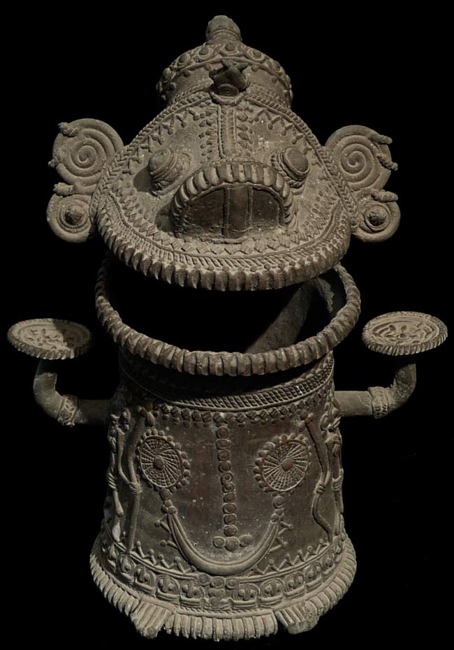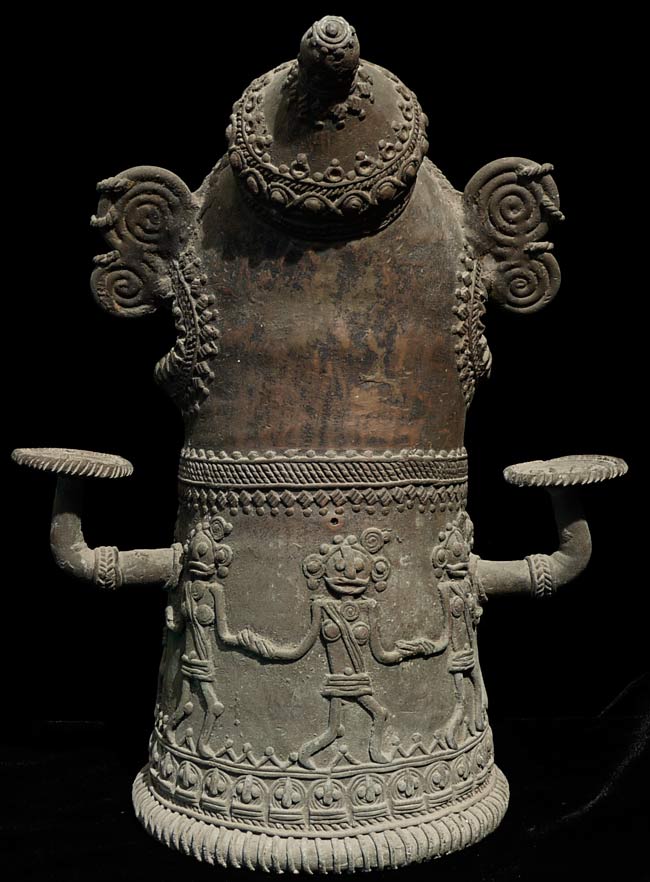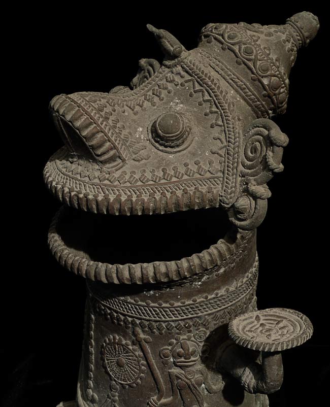 WOW- spectacular antique Indian (Naga people?) ritual bronze figure. Never seen another Incredible detail. Large at 10.25" tall, bottom diameter is 5"