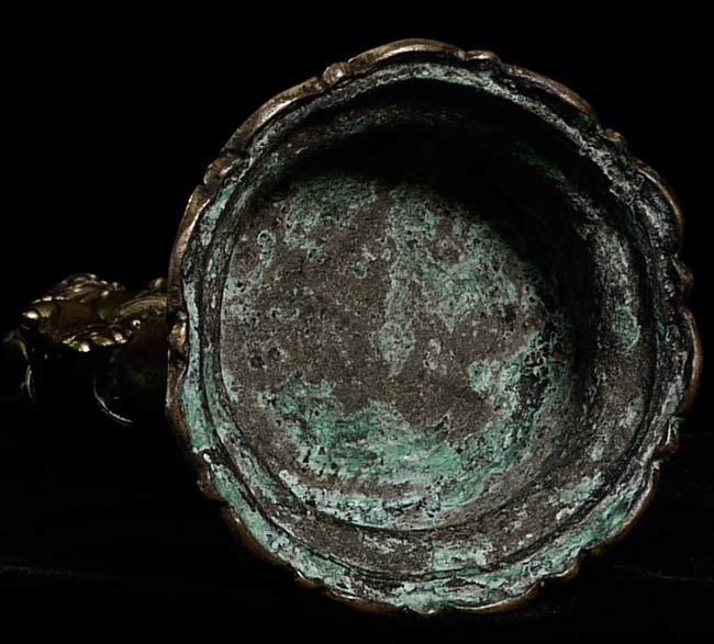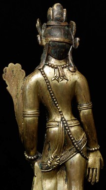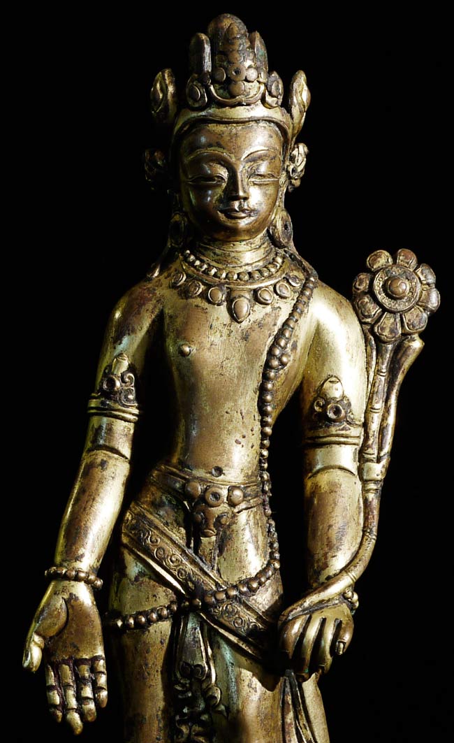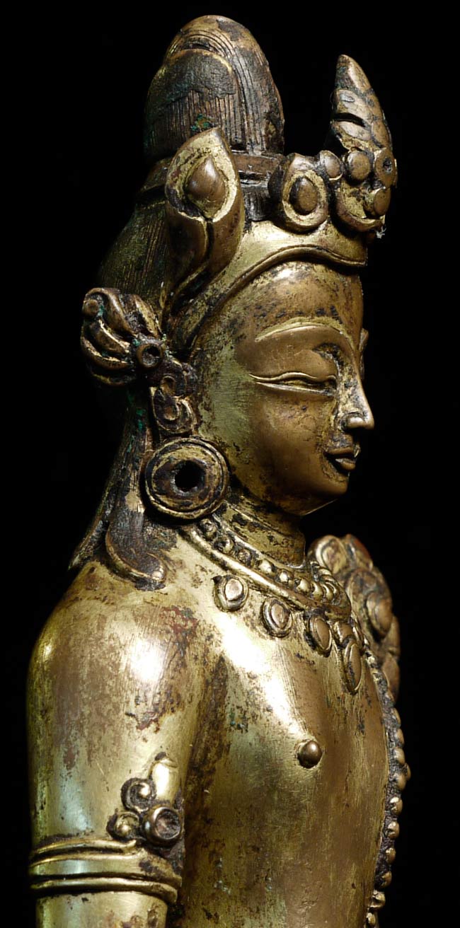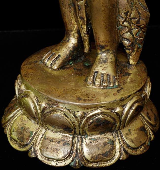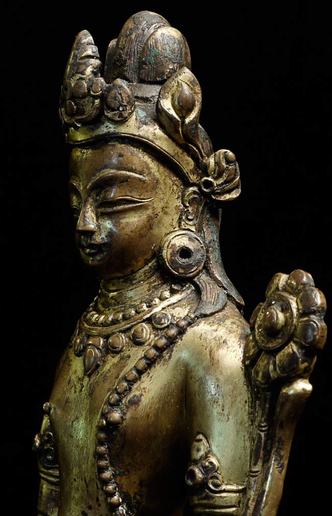 Superb Antique Nepalese Bronze Padmapani. PRobably 18th century emulation of an earlier style. Bottom was originally consecrated. Special piece. 7" tall, bottom diameter is 2.5"