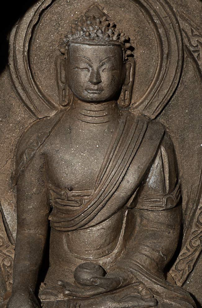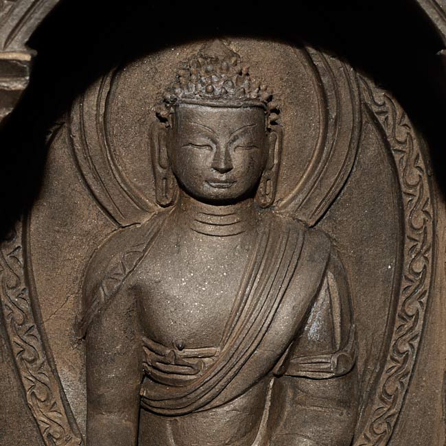 Decorative Tibetan Clay Buddha. 8" tall, 6" wide, 2" deep