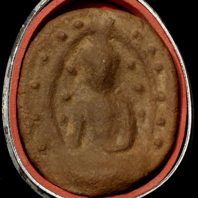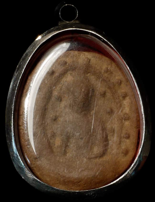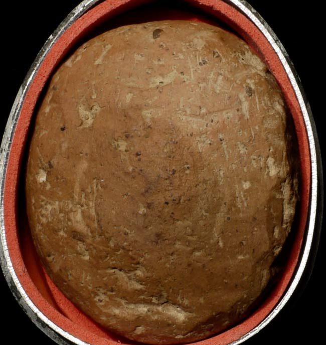 Very early terracotta amulet is 1.5" tall, 1.25" wide, 5/8" deep.
