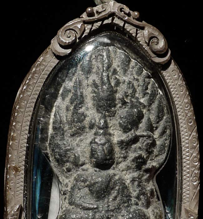 Antique silver/lead alloy amulet is 1 7/8" tall, 1 1/8" wide, .25" deep. authentic early one.
