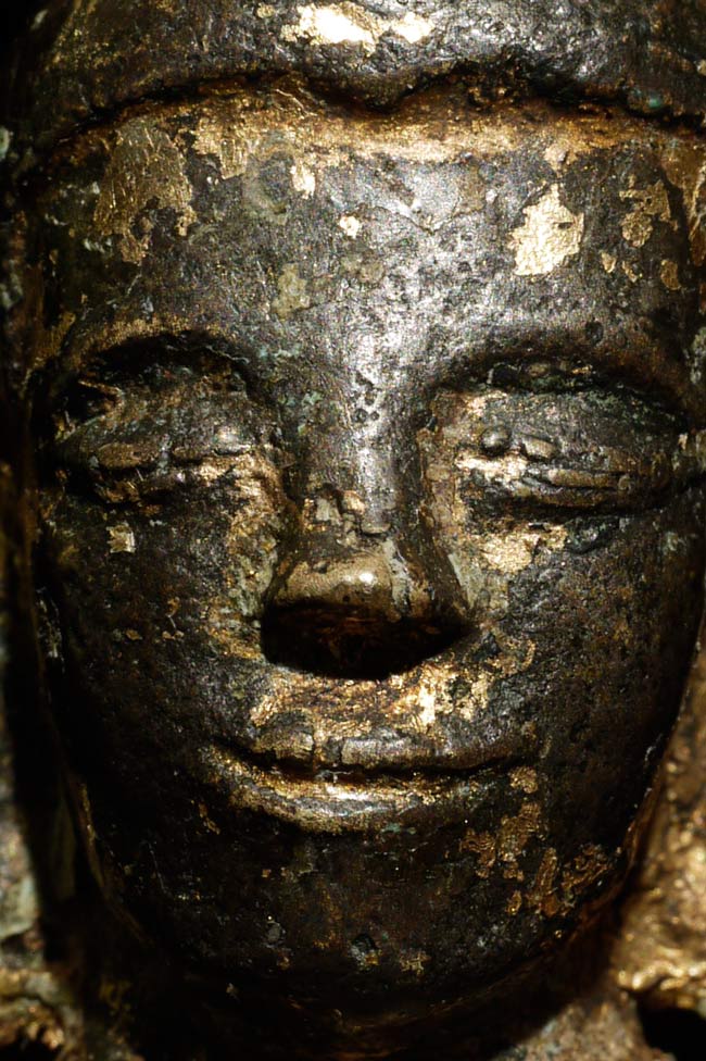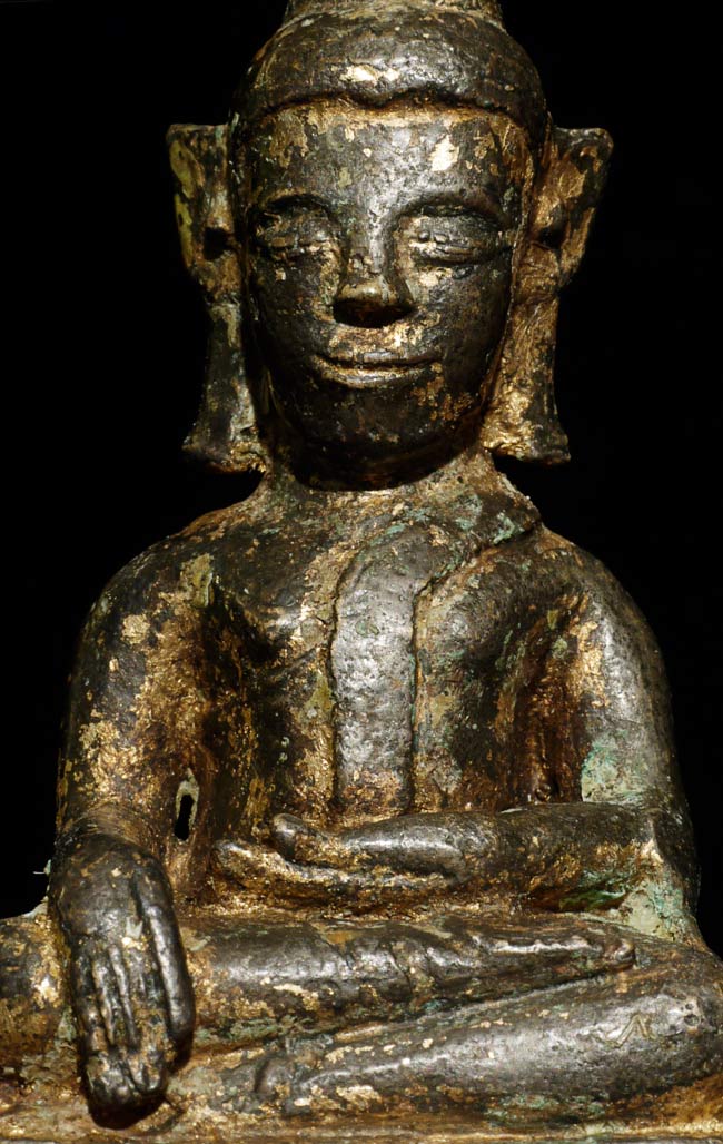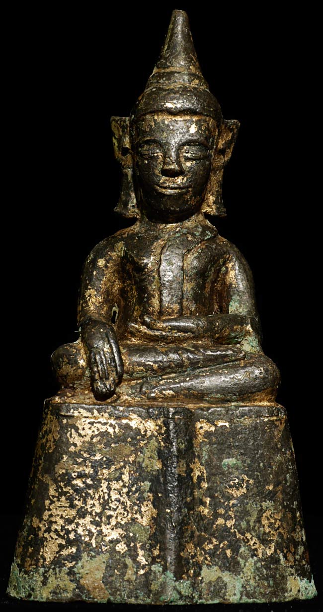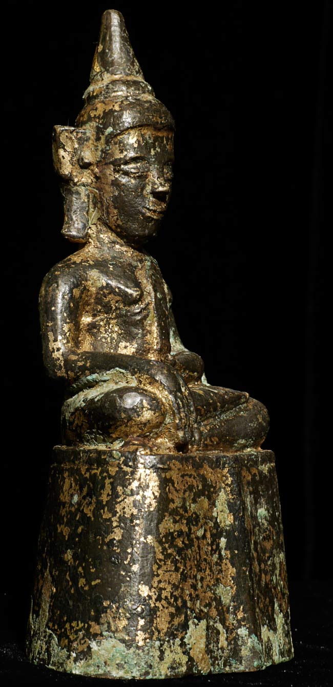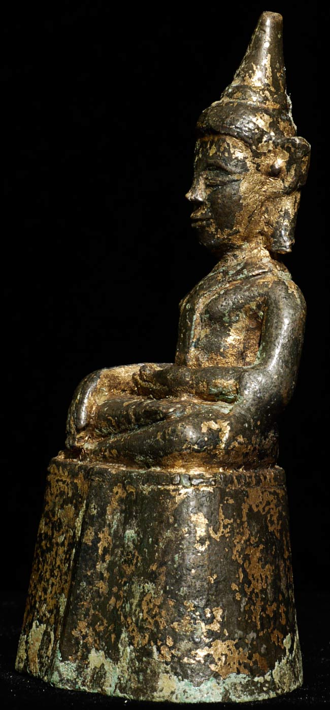 Delightful 15/16thC Buddha with both Lao and Thai (Utong style)) features. Radiates a joyous presence. 3.75" tall, bottom is 1 7/8" x 1.5"