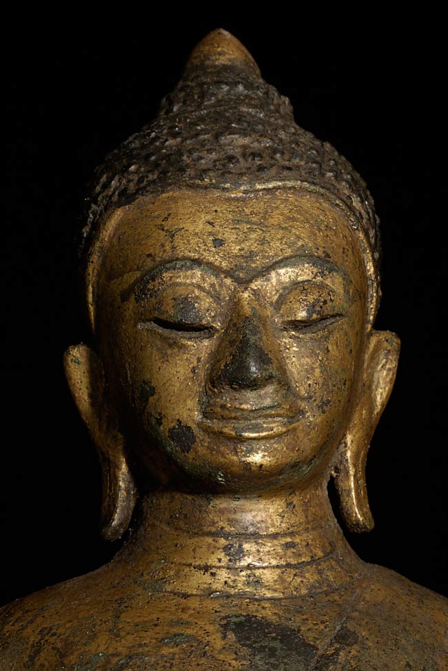 Exceptional Khampen Phet style Buddha. Very special face. Nice size at 10 3/8" tall, bottom is 7" x 3.25"