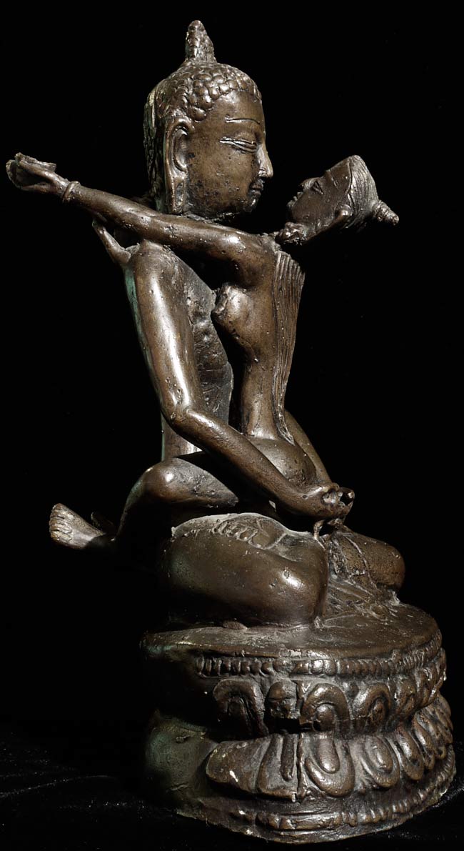 Vintage/Old Nepalese Tantric couple in Yab-Yum. 8" tall, bottom of base measures 5" x 3"