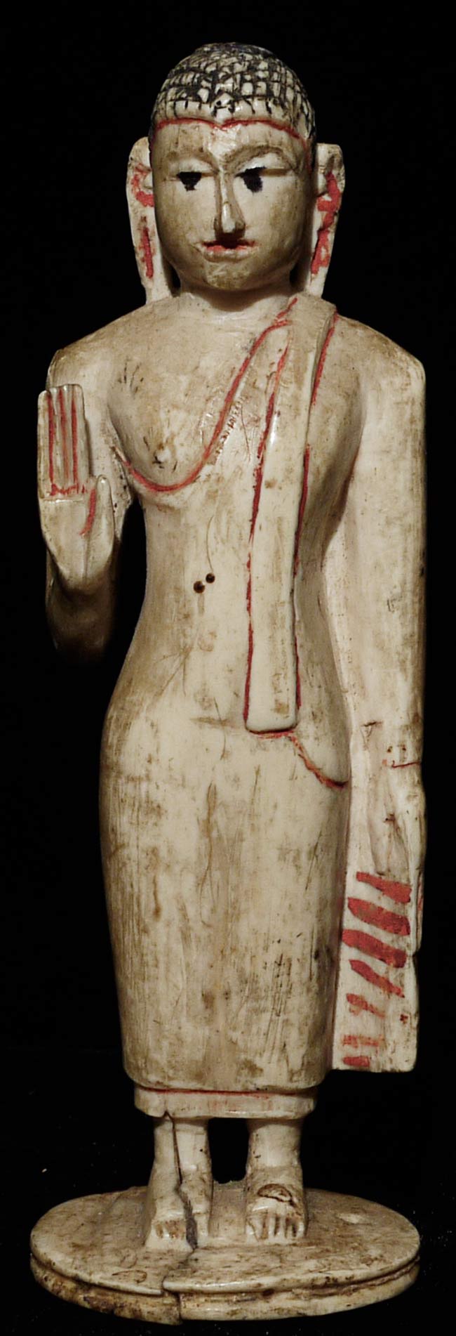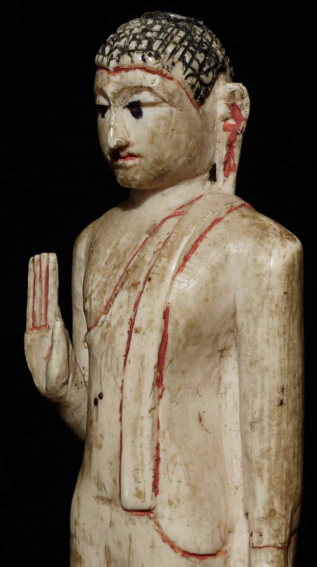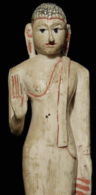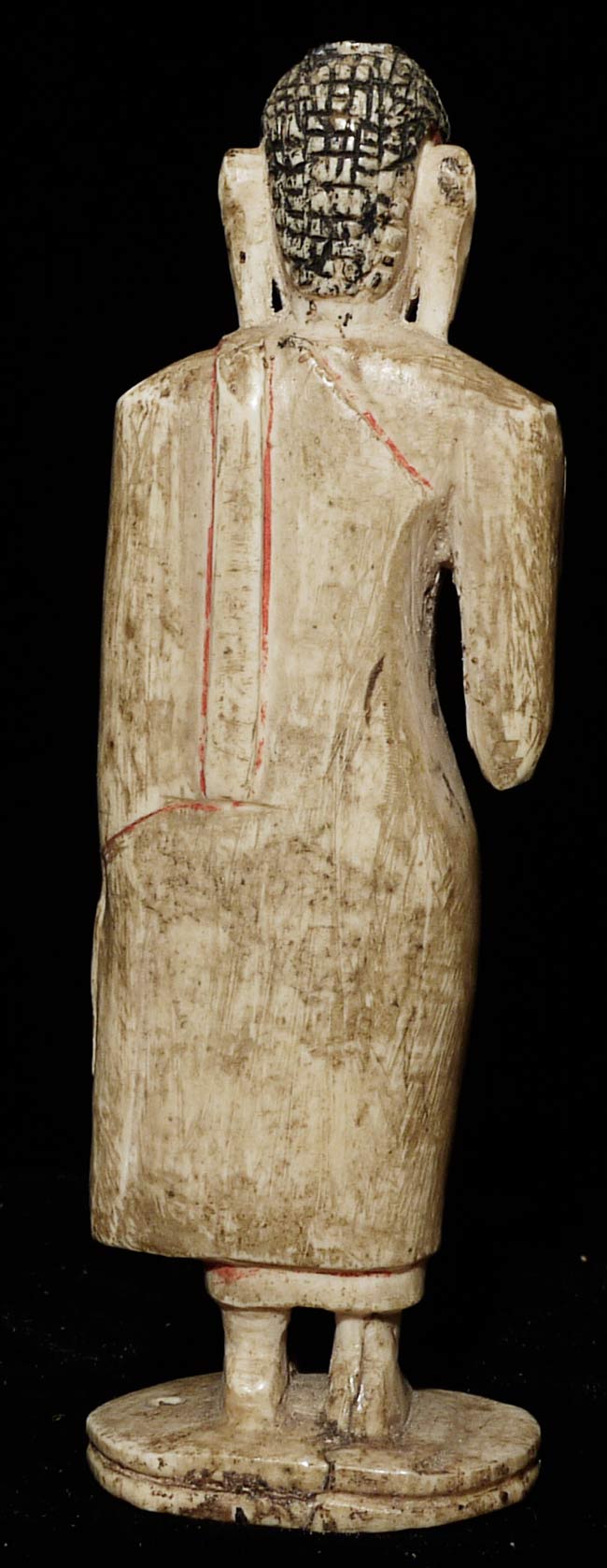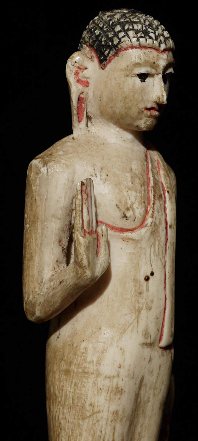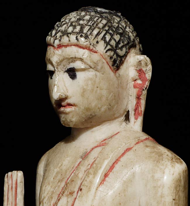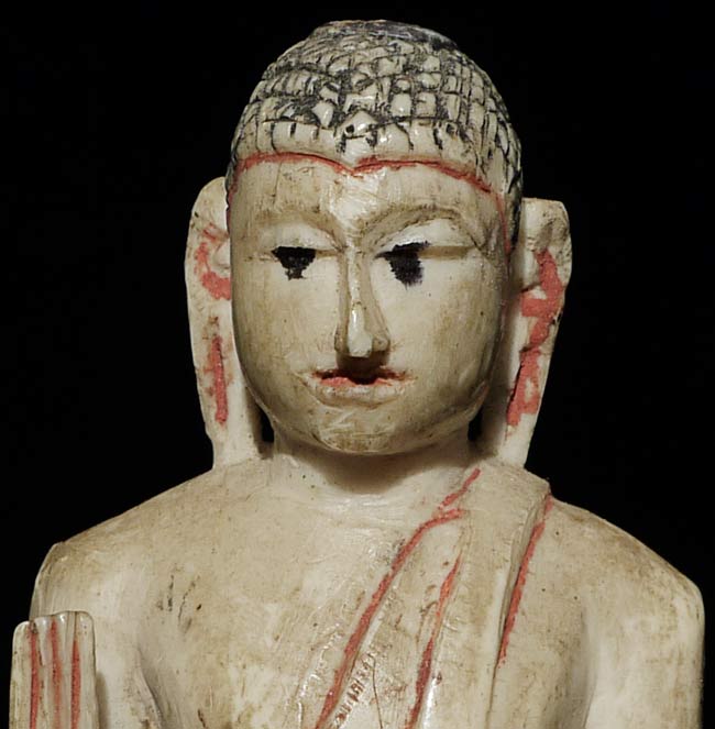 Old Sri Lankan Buddha. Not sure of material. Missing finial- otherwise in excellent condition. Uncommon, with a very sweet face. 4.25" tall, bottom measures 1 3/8" x 1 1/8"