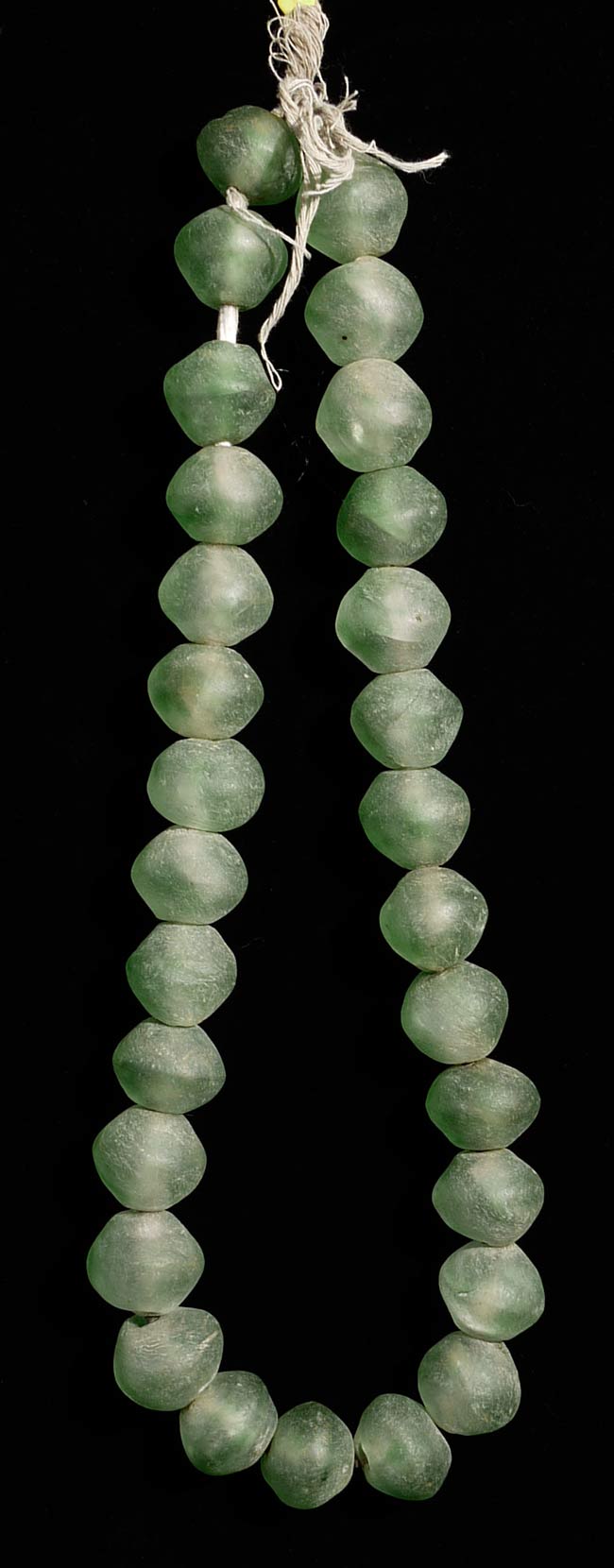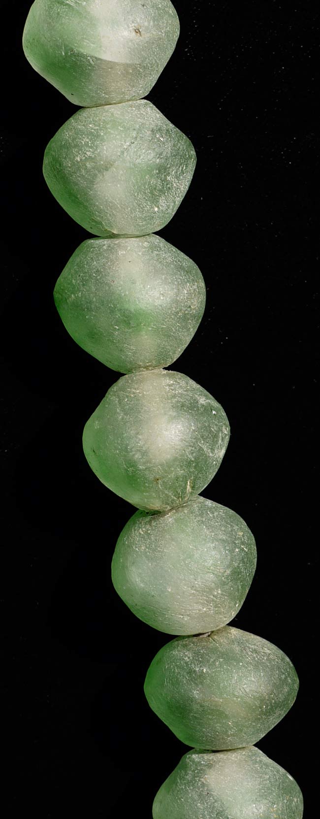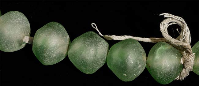 Necklace of very early and quite large green glass "seafoam" beads has a diameter of 13". Subtle and lovely!