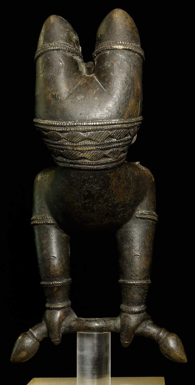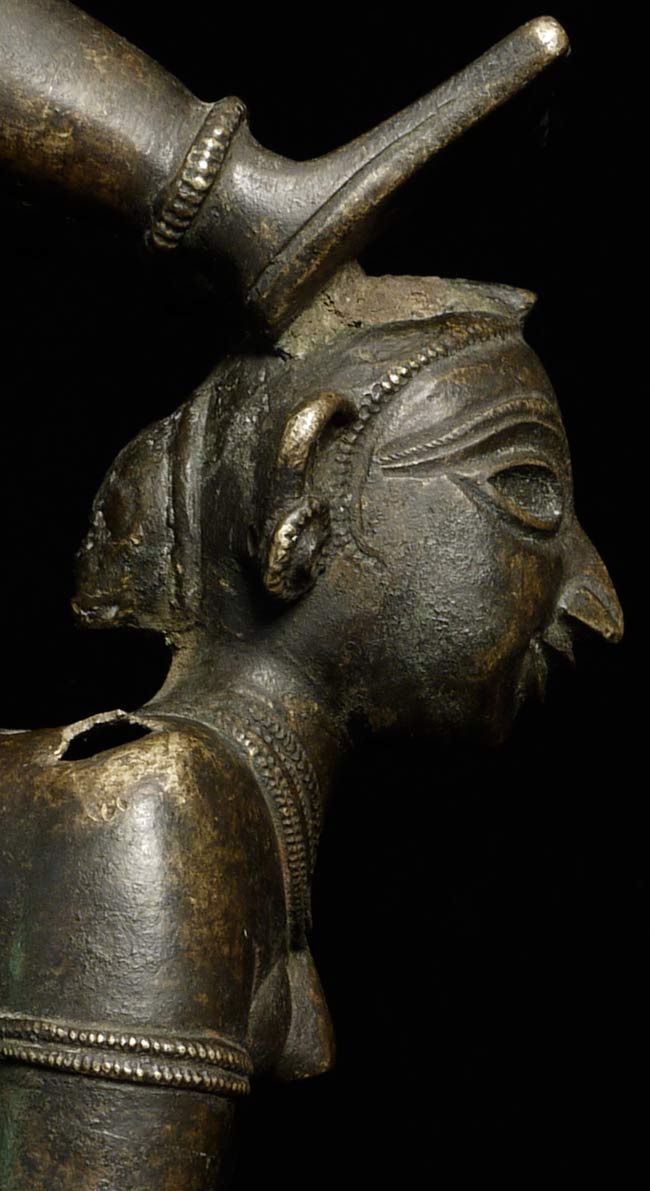 Unique- Antique Nepalese figure in a remarkable yogic pose. Great sculpture- with a sense of animated movement rarely seen in Himalayan sculpture. Never seen anything like it. From a great European collection. Quite old- unsure how to date reliably. Figure is 7.5", the acrylic base adds another 4" in height and is 3" square on the bottom.