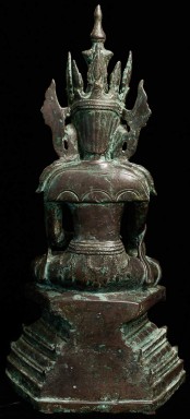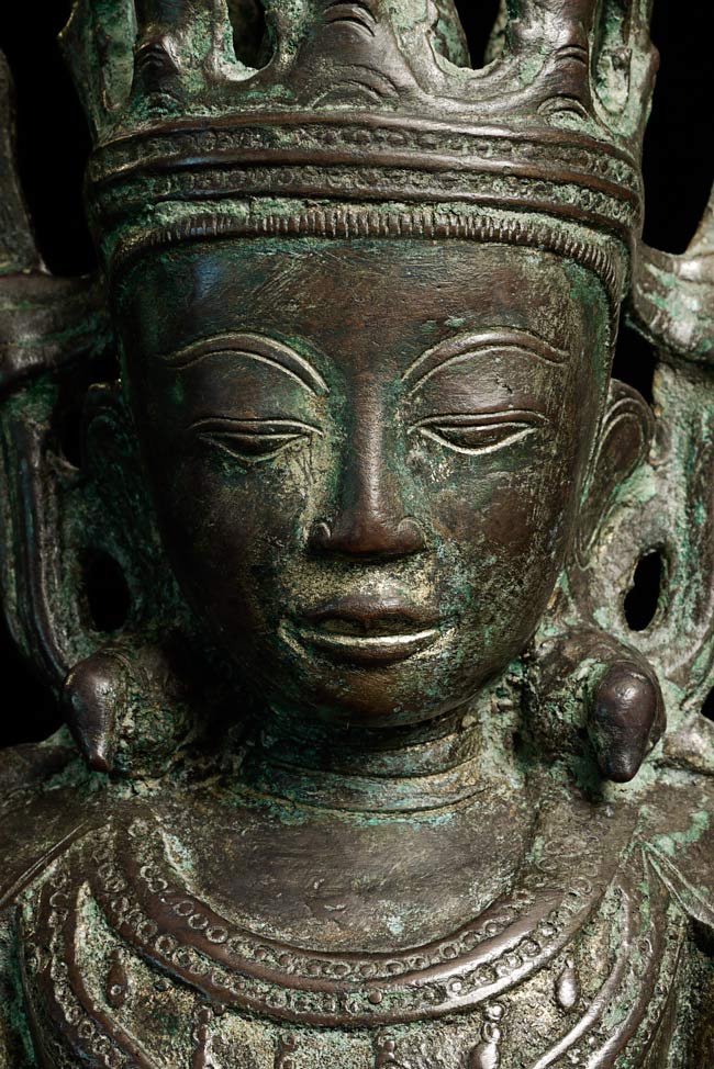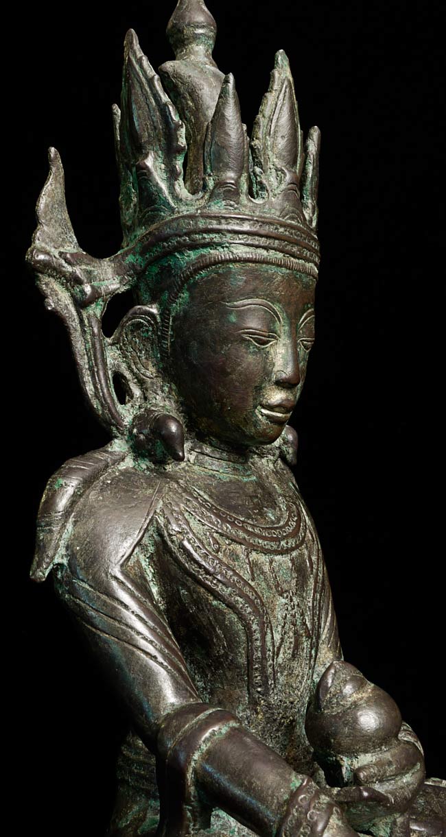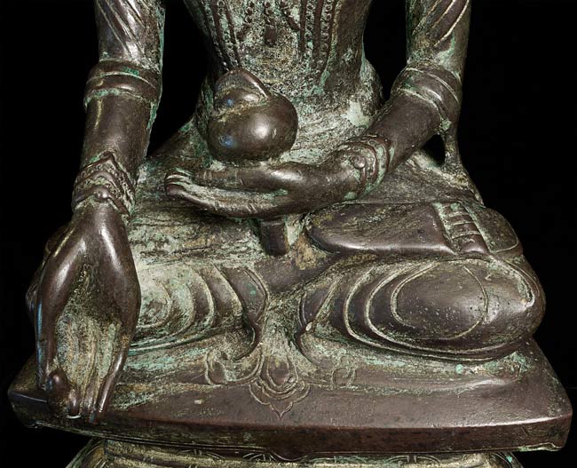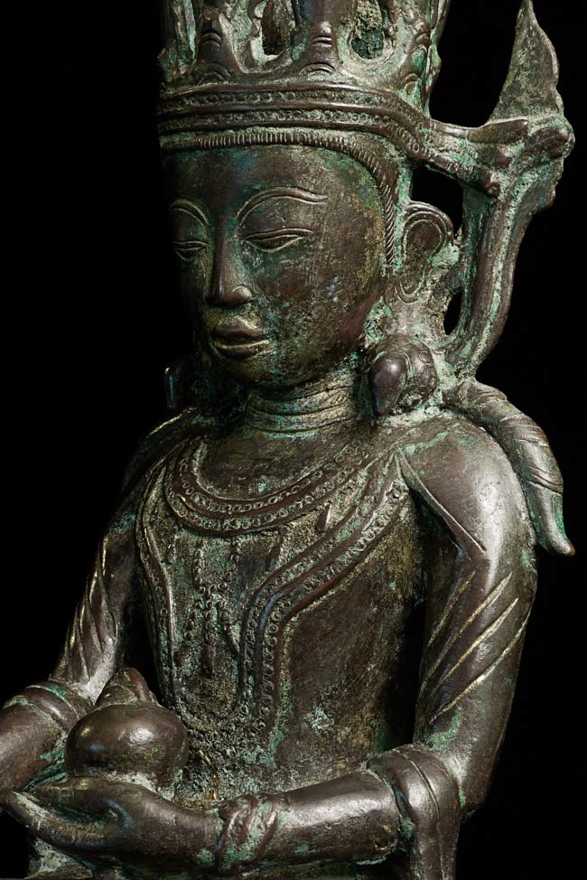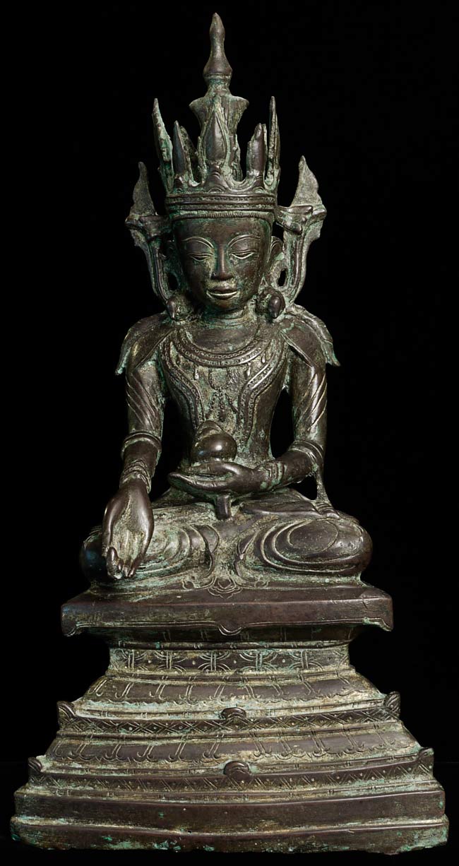 15/16thC Burmese Arakan Bronze Buddha. Rare to find this type in any size- extremely rare in this high quality and large size. Special! Sits 15.75" total height. Bottom measures 8 x 4.75"