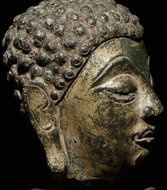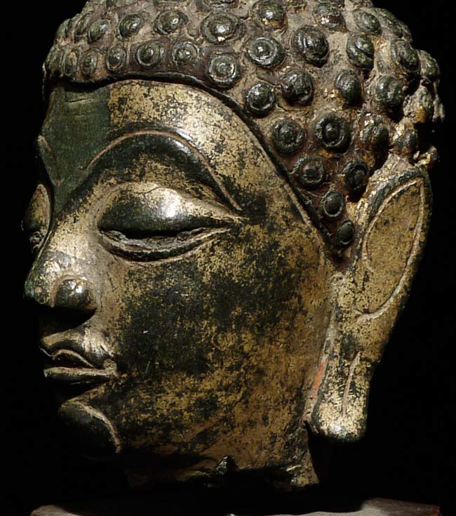 Very beautiful 15/16thC Northern Thai Buddha Head. Sits 2.25" tall. Base is 1.75" tall, 1 5/8" square.