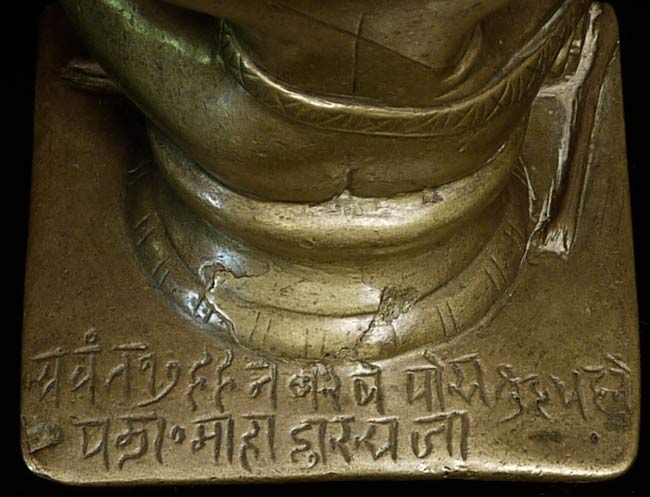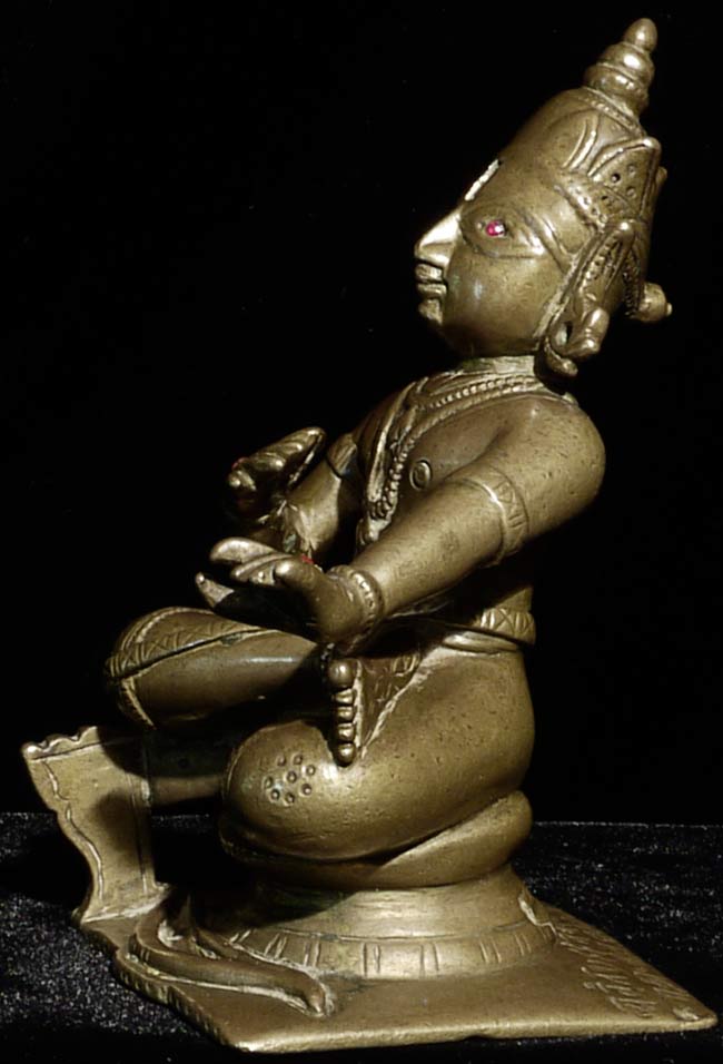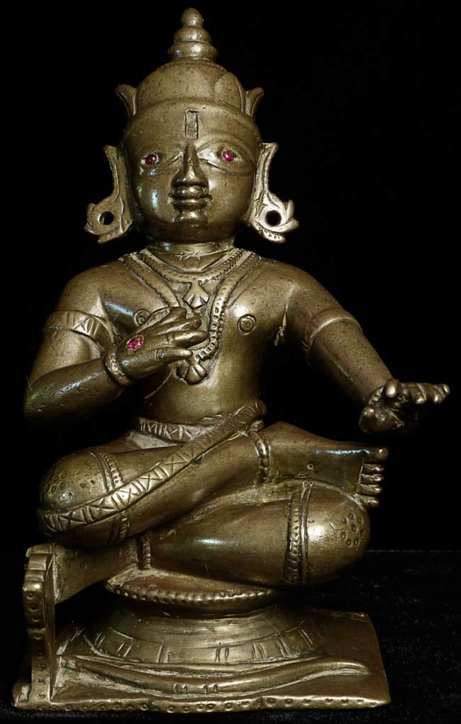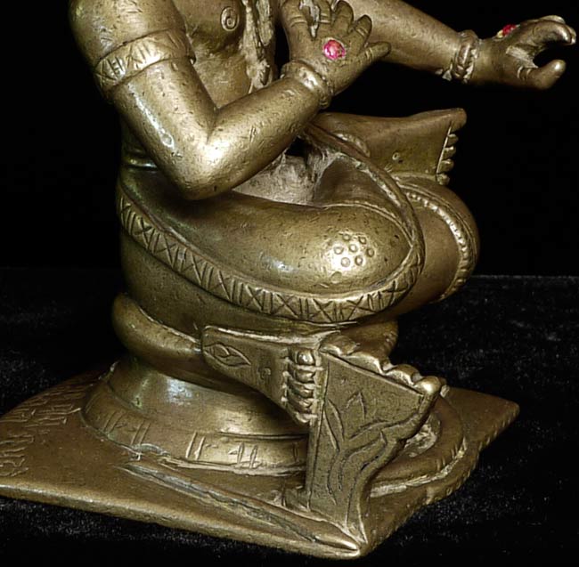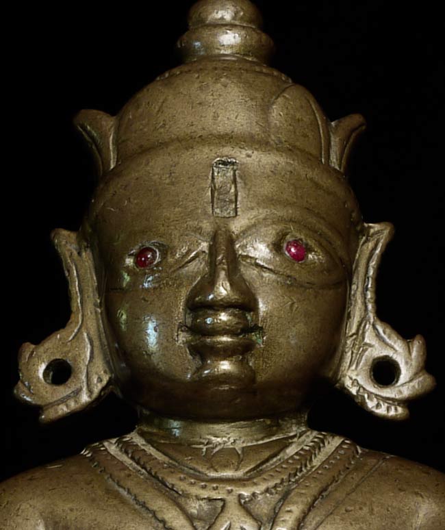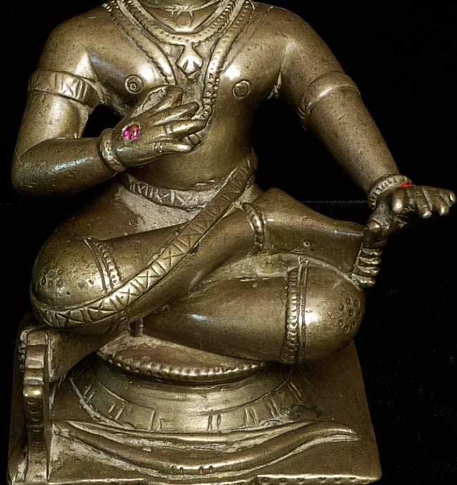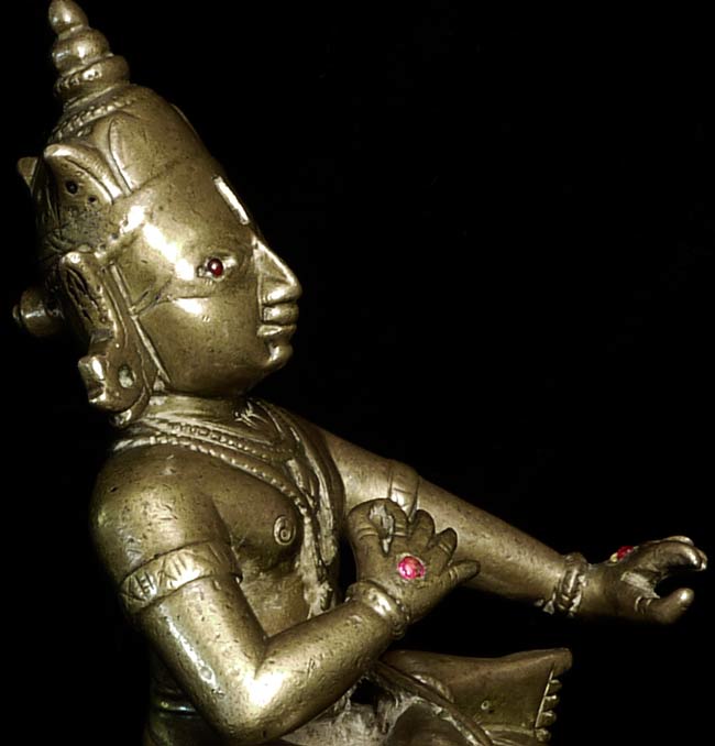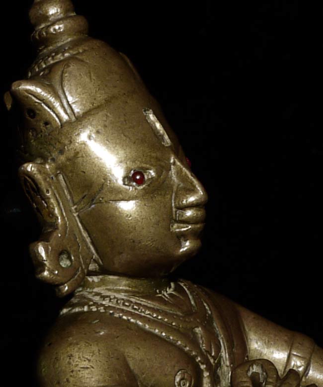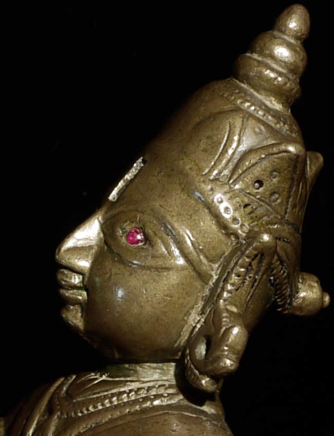 Powerful 18thC Indian Bronze Figure. Sits 4 5/8" tall and extremely heavy. Larger than the height conveys. Ruby eyes.