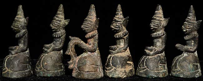 Set of 6 19thC Burmese Monks. All approximately 2.25" tall.
