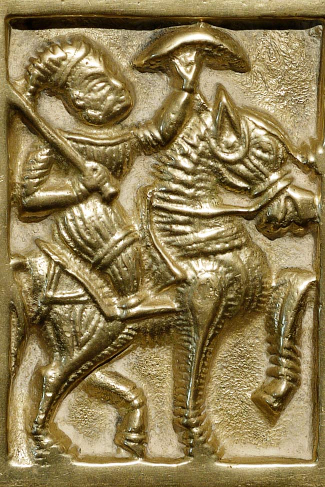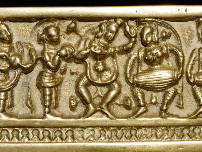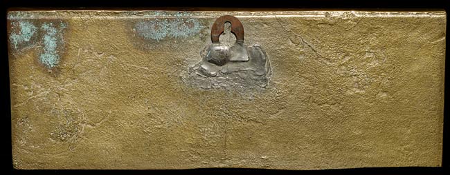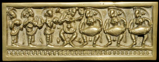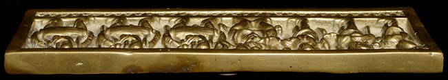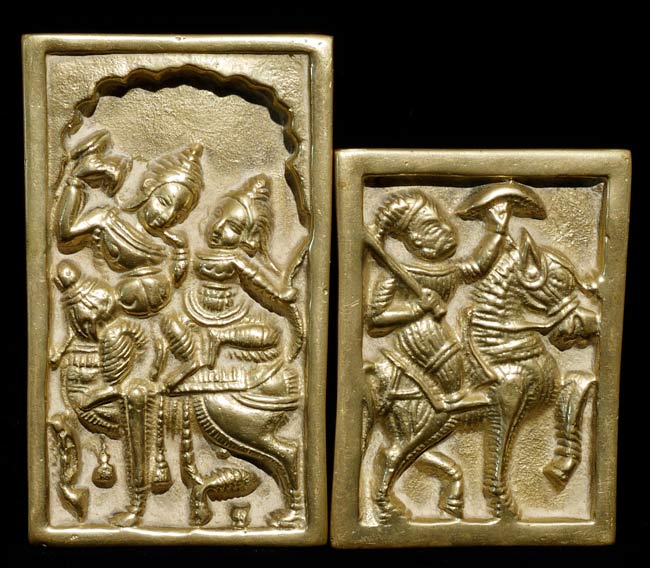 Set of 3 Brass Indian Plaques. Largest is 8" x 3" x .5"; 2 7/8' x 4 7/8" x .5"; smallest is 2 7/8" x 3 7/8" x .5"