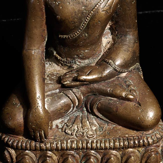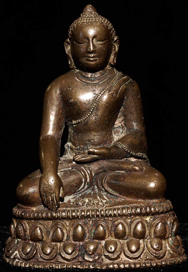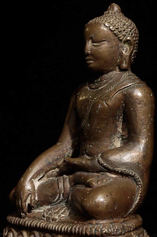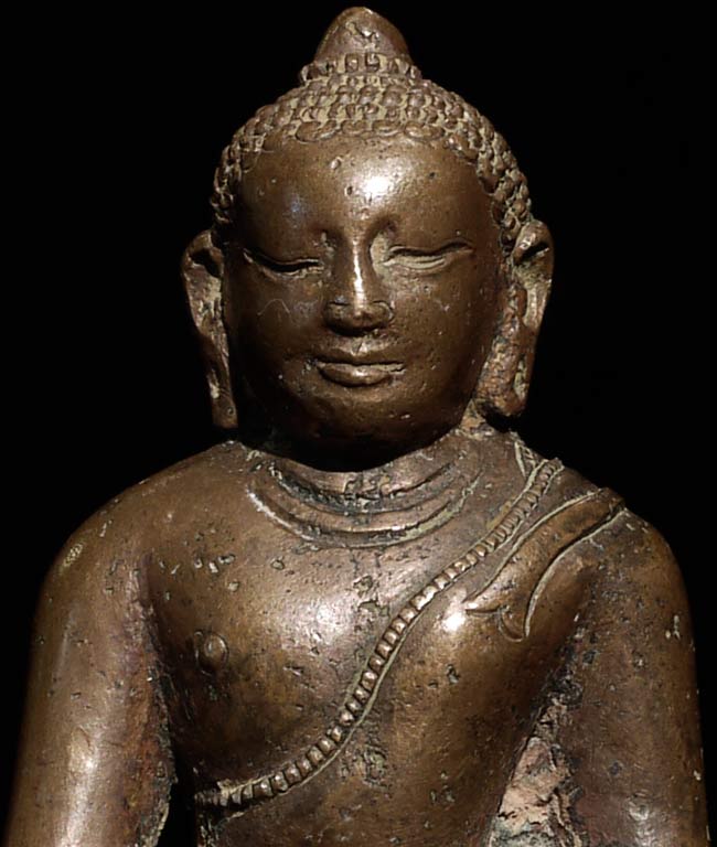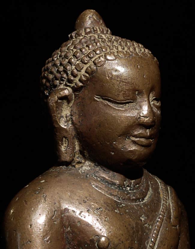 Deep concentration and calm radiate from this outstanding 12/13thC Burmese bronze Buddha. 3" tall