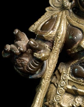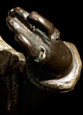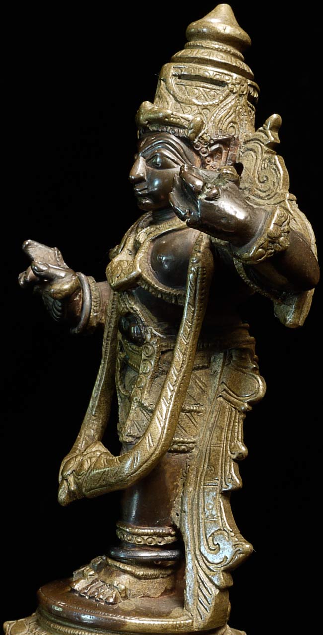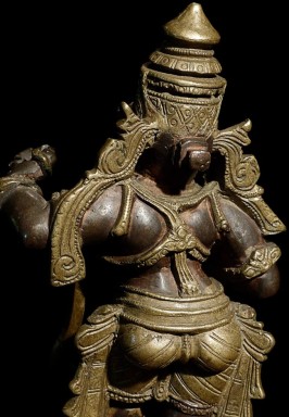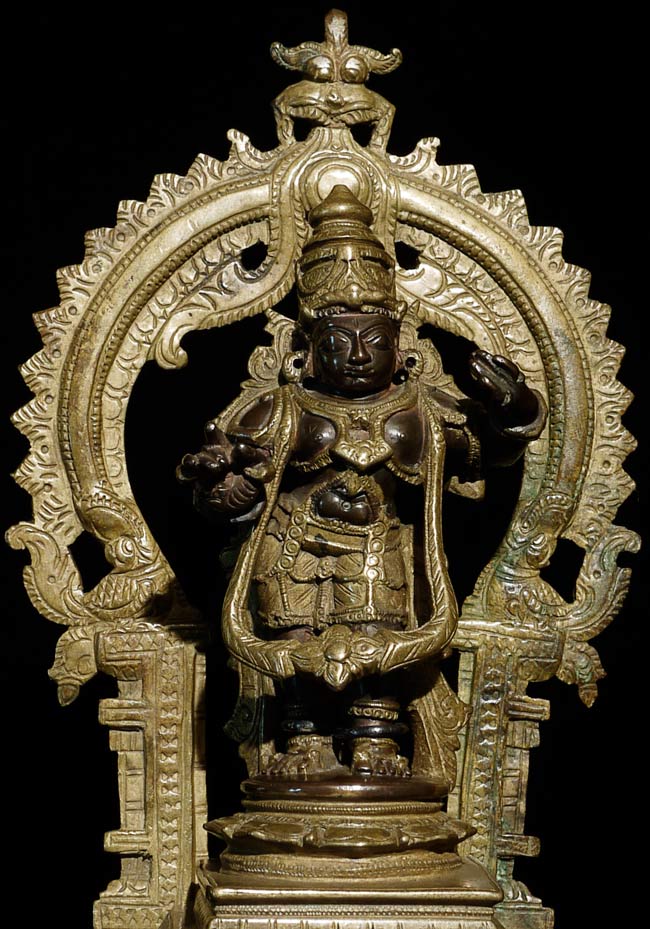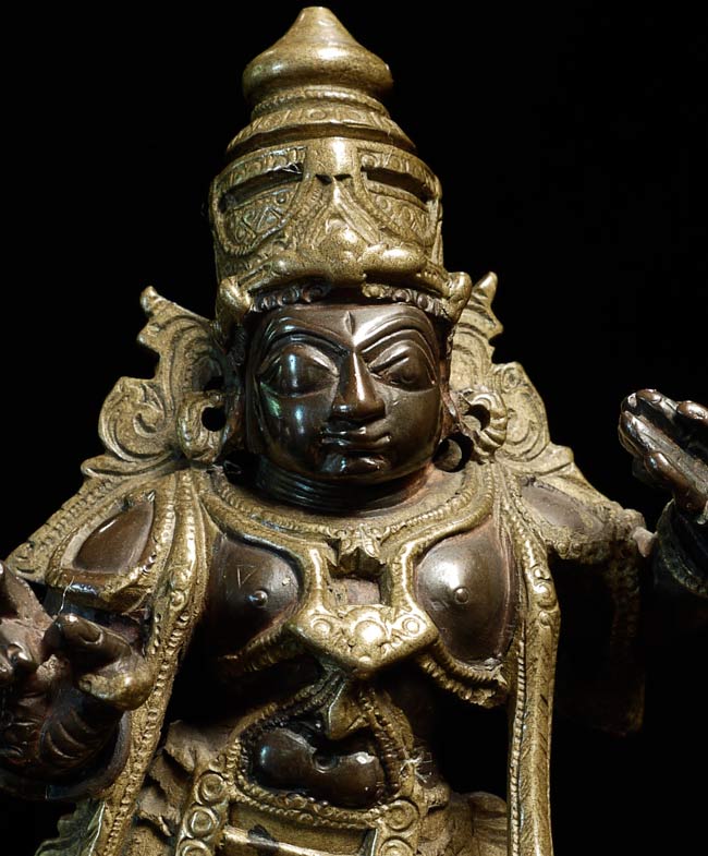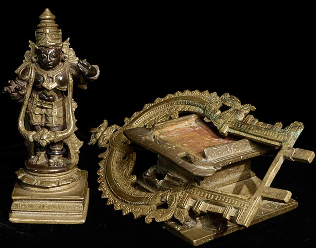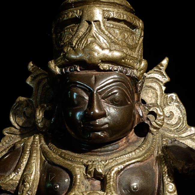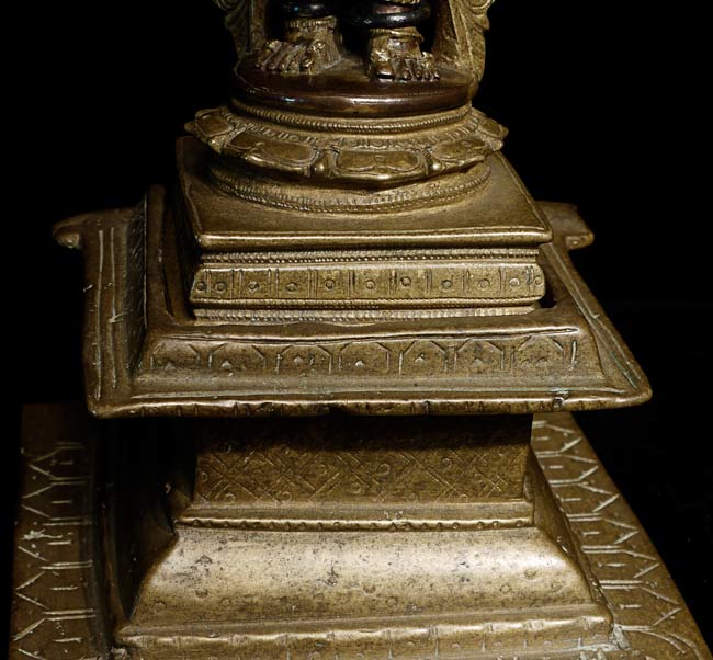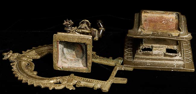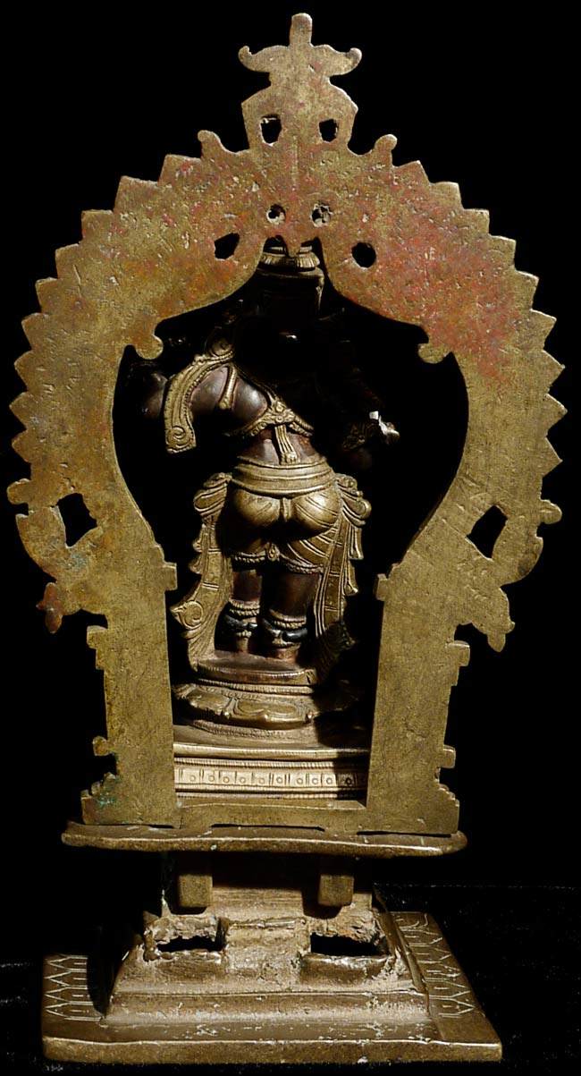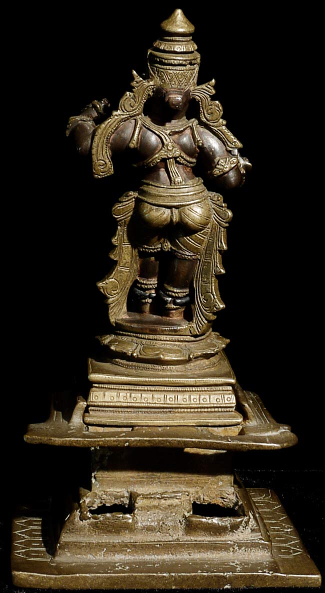 Antique Indian Deity with orifinal base and backplate. Appears to be made of 2 differnent metals. Never seen another like this. Very nice! Total height is 7", bottom measures 3" x 3.25"