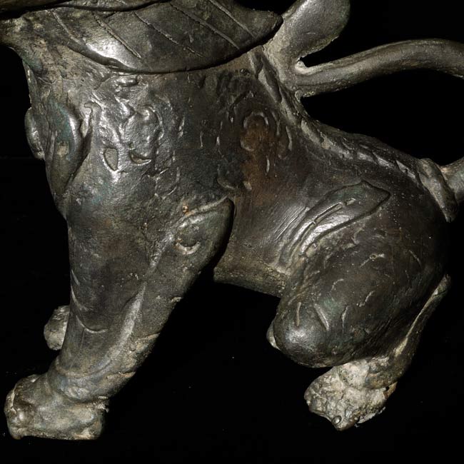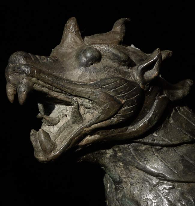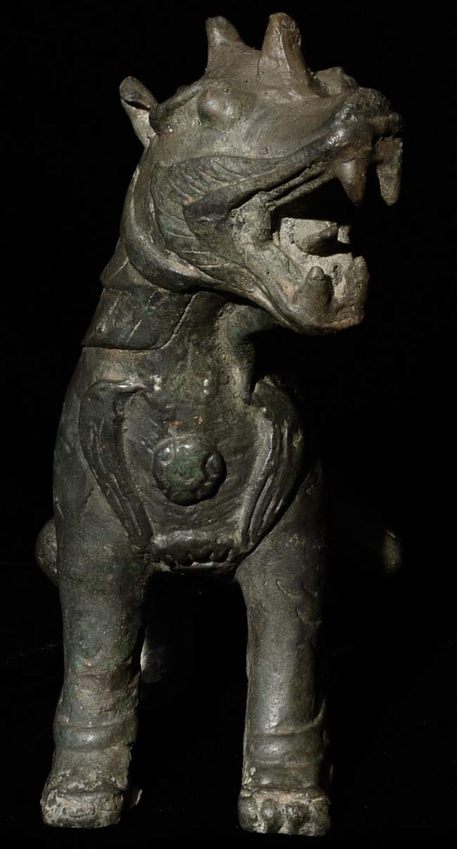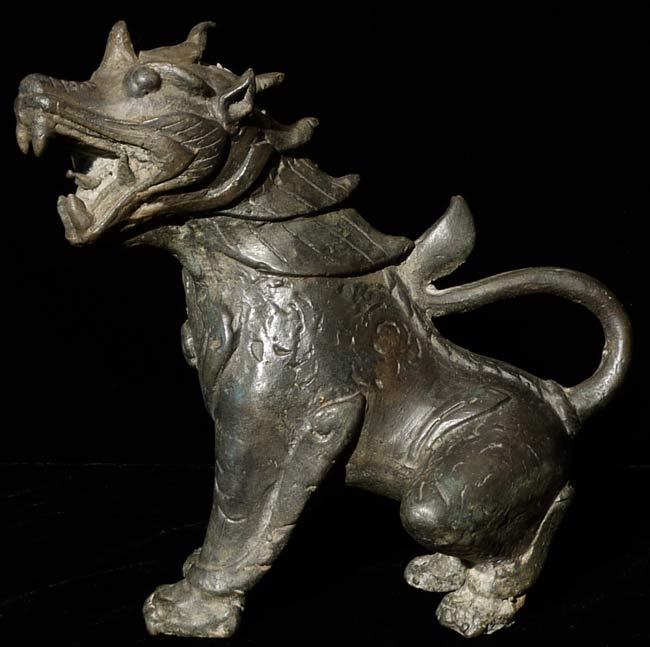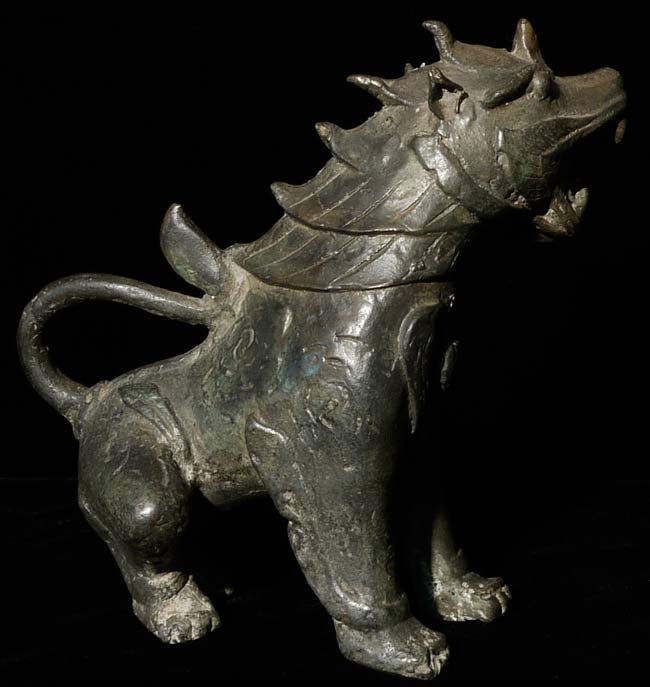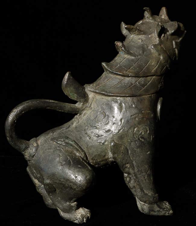 Antique Thai or Burmese Lion Dog. Measures 6.25" tall, 6.5" from nose to back of the tail.