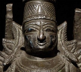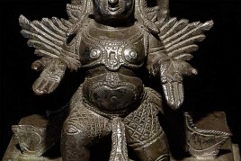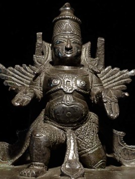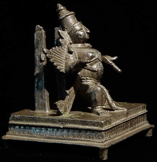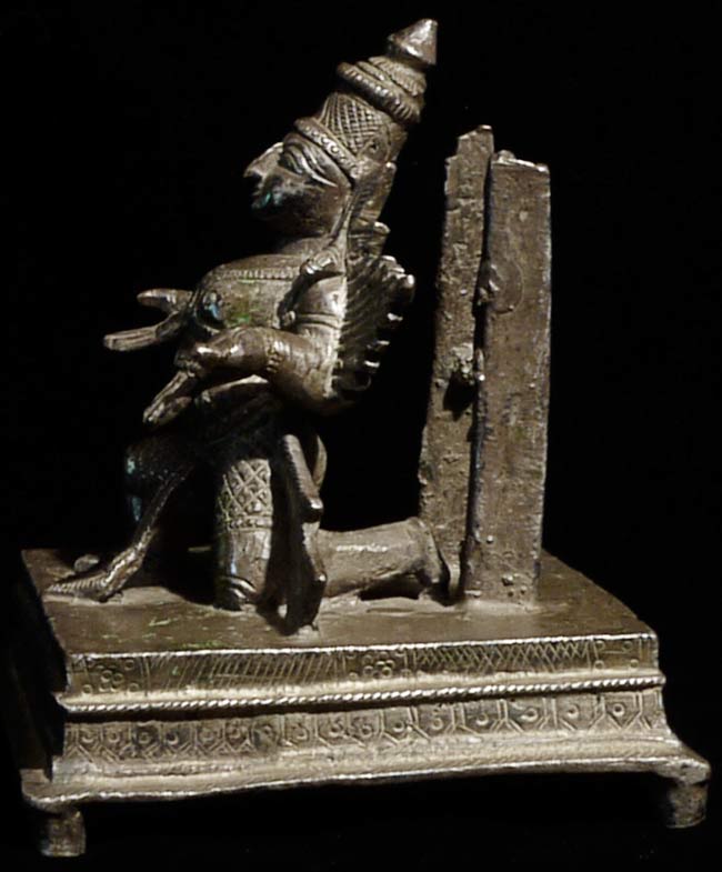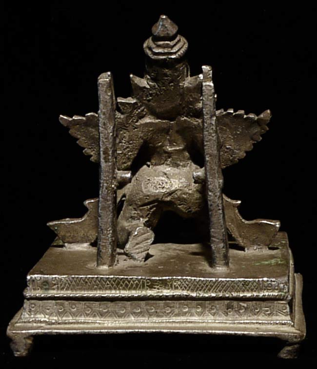 19thC high content silver alloy Garuda. Sits 4" tall. Bottom of base measures 3.75" x 3.5". Very heavy at 17 ounches