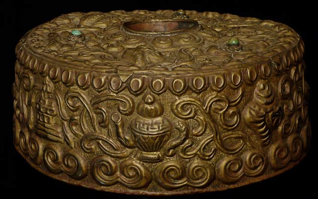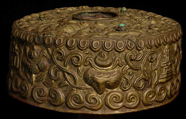 Lovely Antique Tibetan bronze and copper altar piece. LArge at 10" tall, widest point is approximately 7.5"