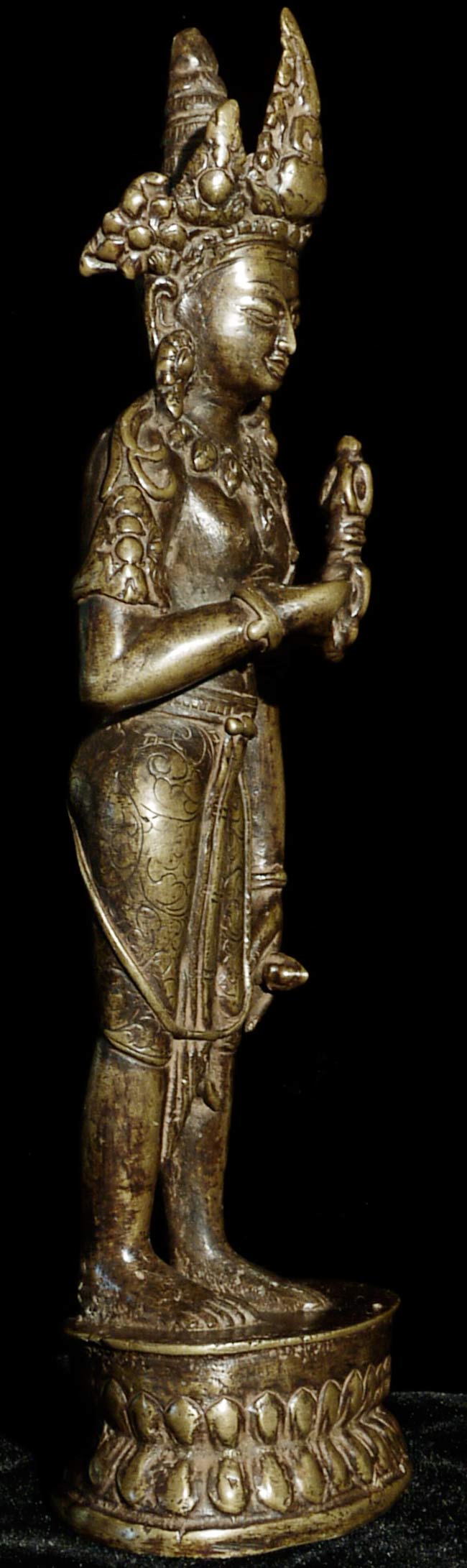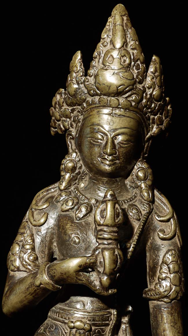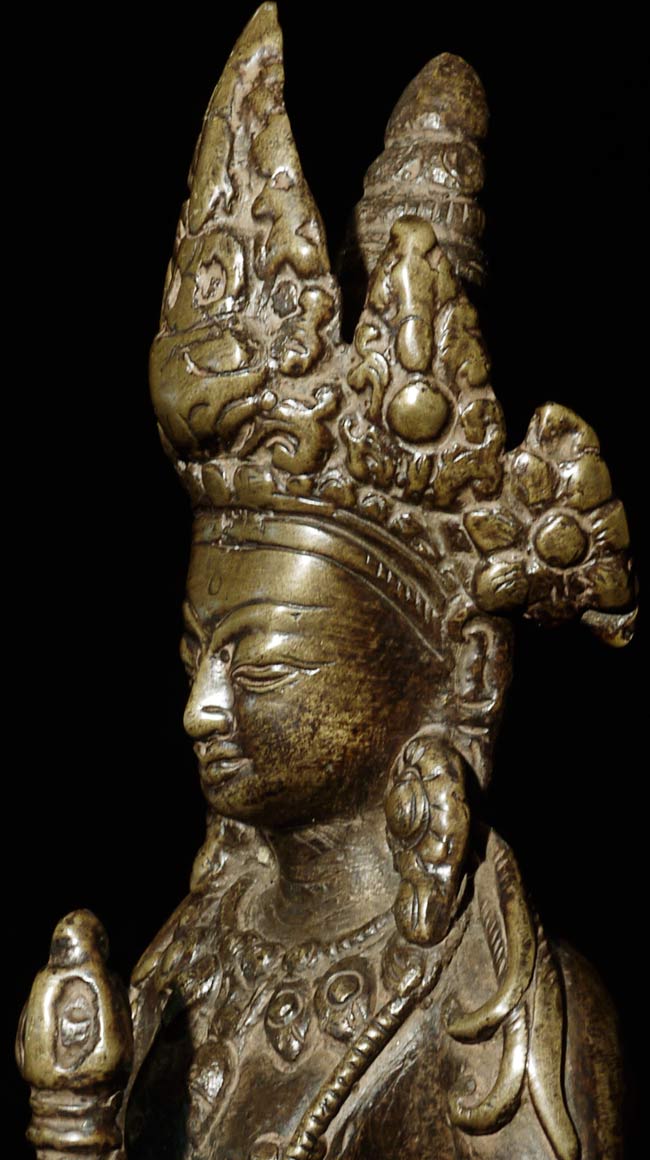 Very unusual 19thC Nepalese Bodhisattva. Nice! Size is large at 10.25" tall.