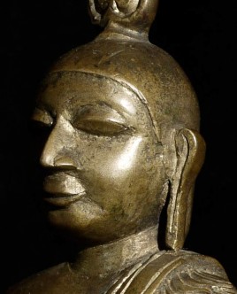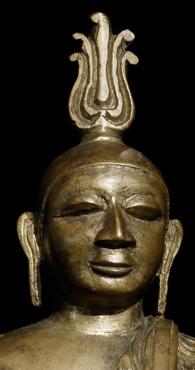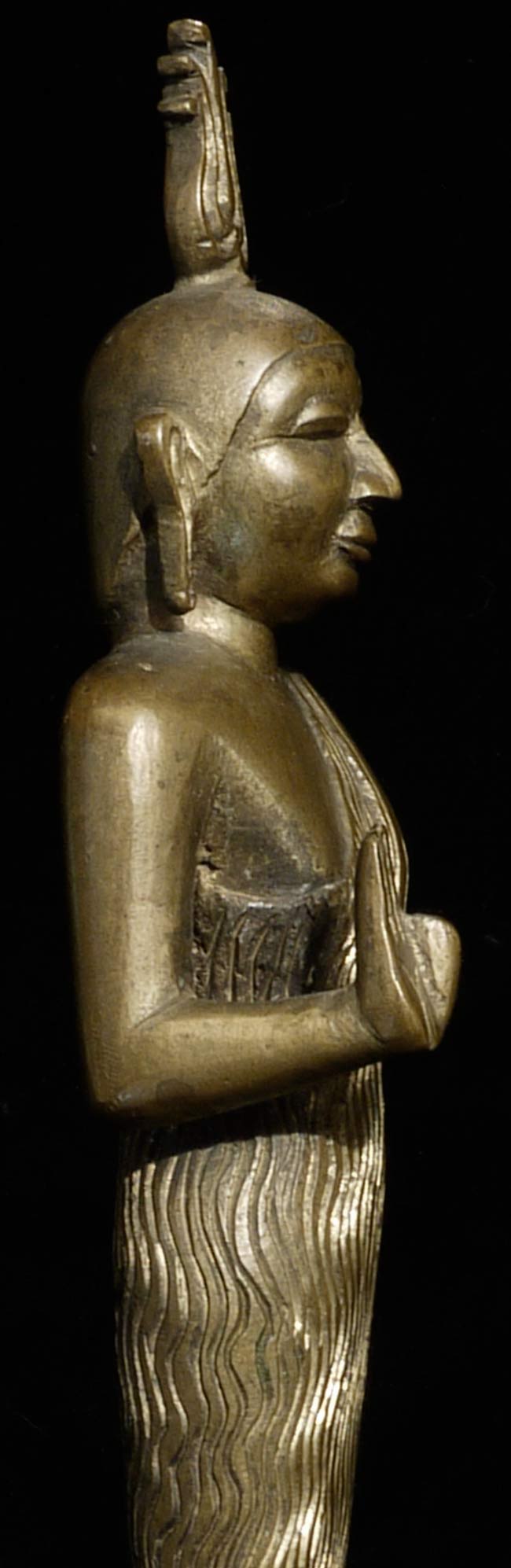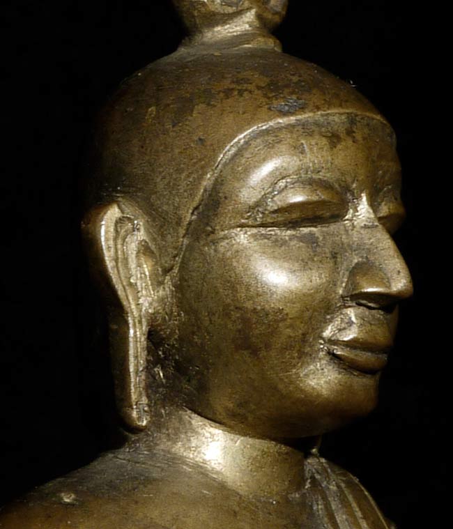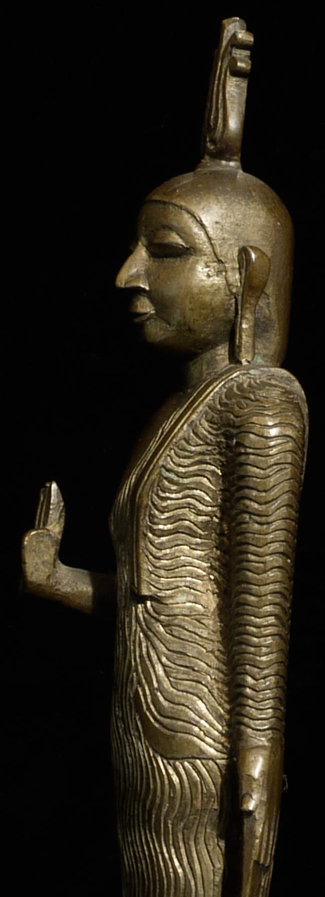 Lovely Sri Lankan Buddha is 7.25" tall. The base is an additional 1" with a diameter of 2.75". Probably 19th century.