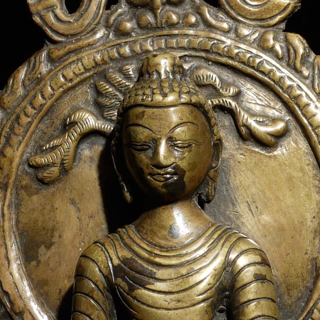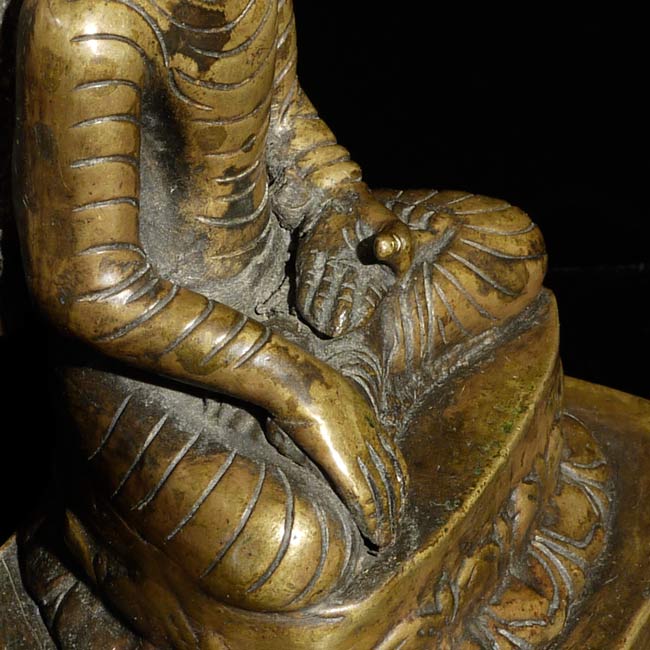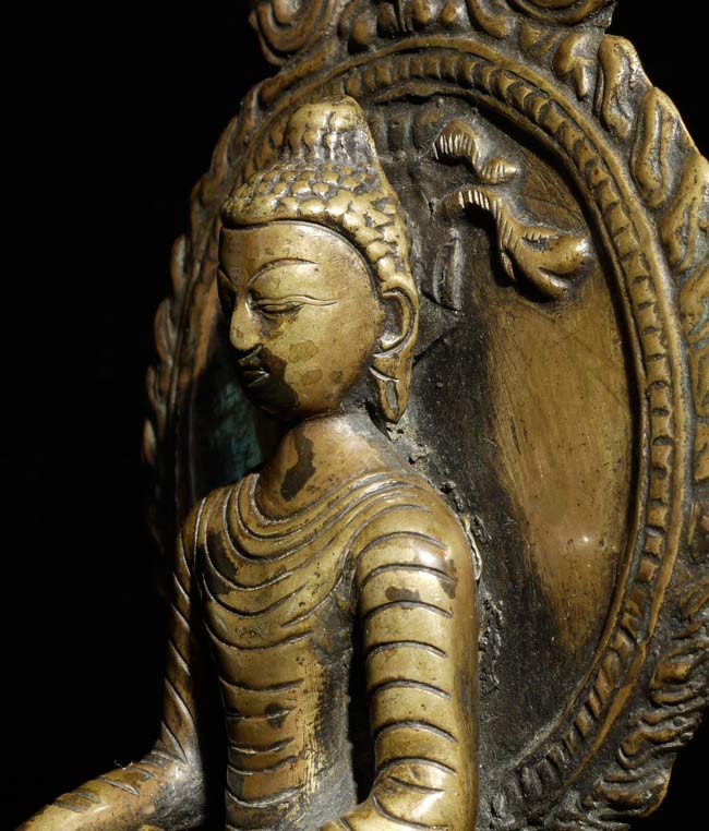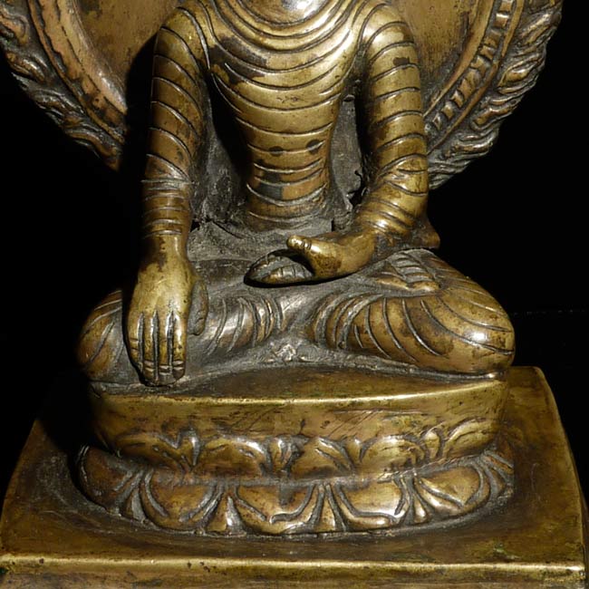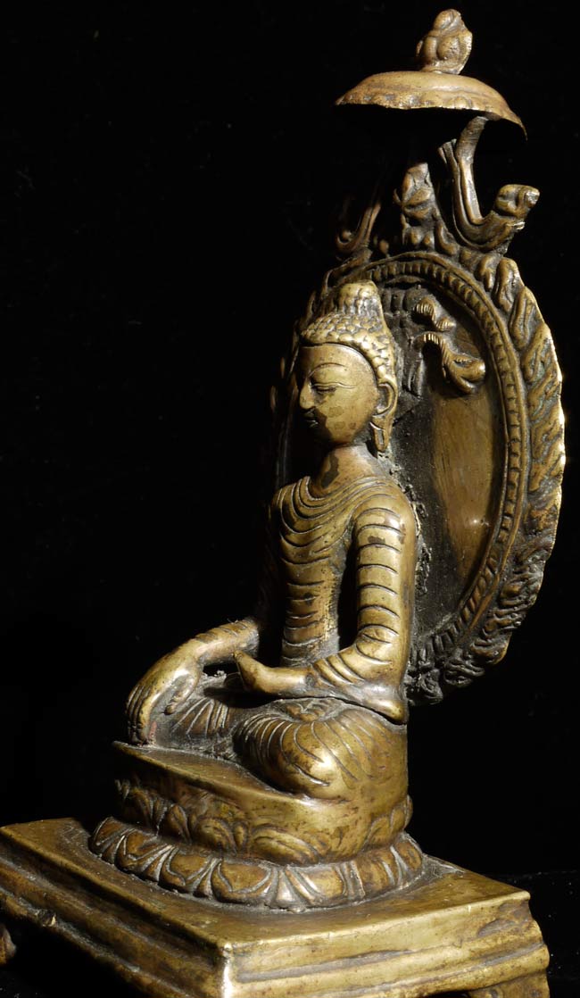 Nepalese Buddha (?) in a very early style. Probably early 19th century. I found another very similar piece which I am listing separately (#4503). They look great together. Sits 6" tall, bottom measures 3" x 2.5"