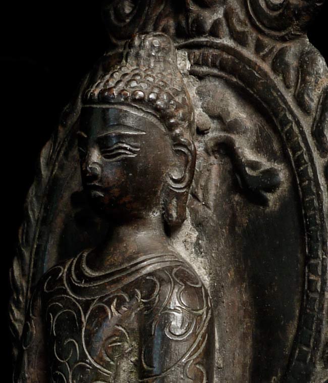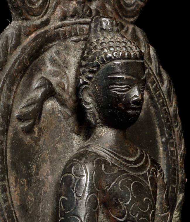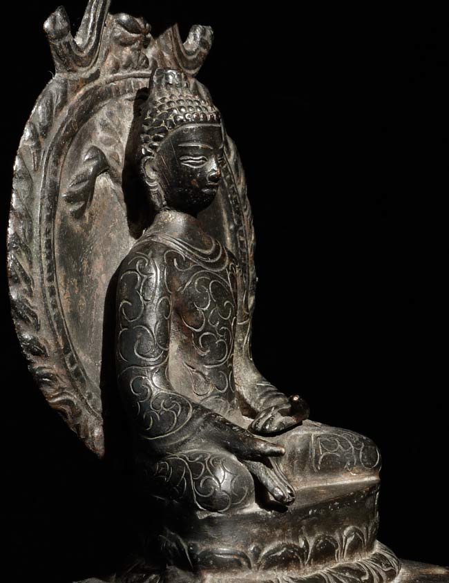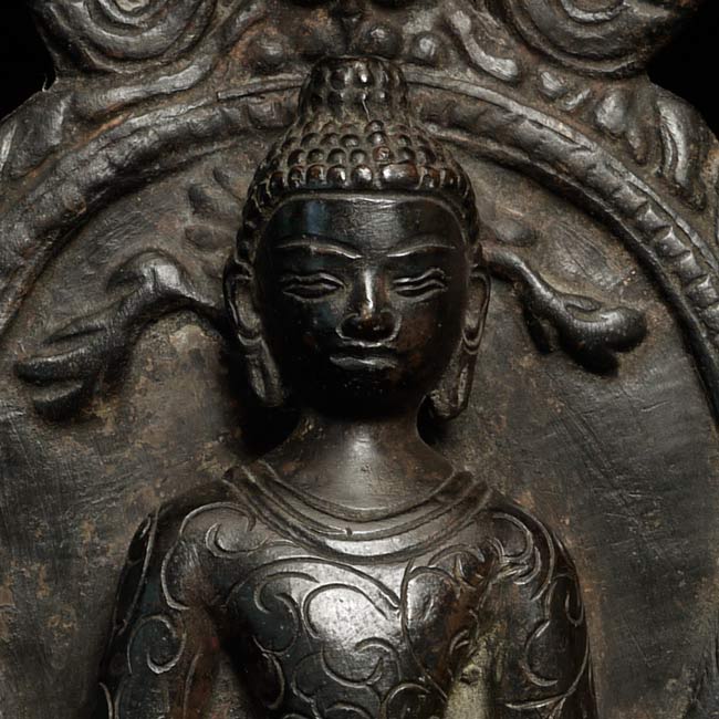 Nepalese Buddha (?) in a very early style. Probably early 19th century. I found another very similar piece which I am listing separately (#4502). They look great together. Sits 6" tall, bottom measures 3" x 2.5"